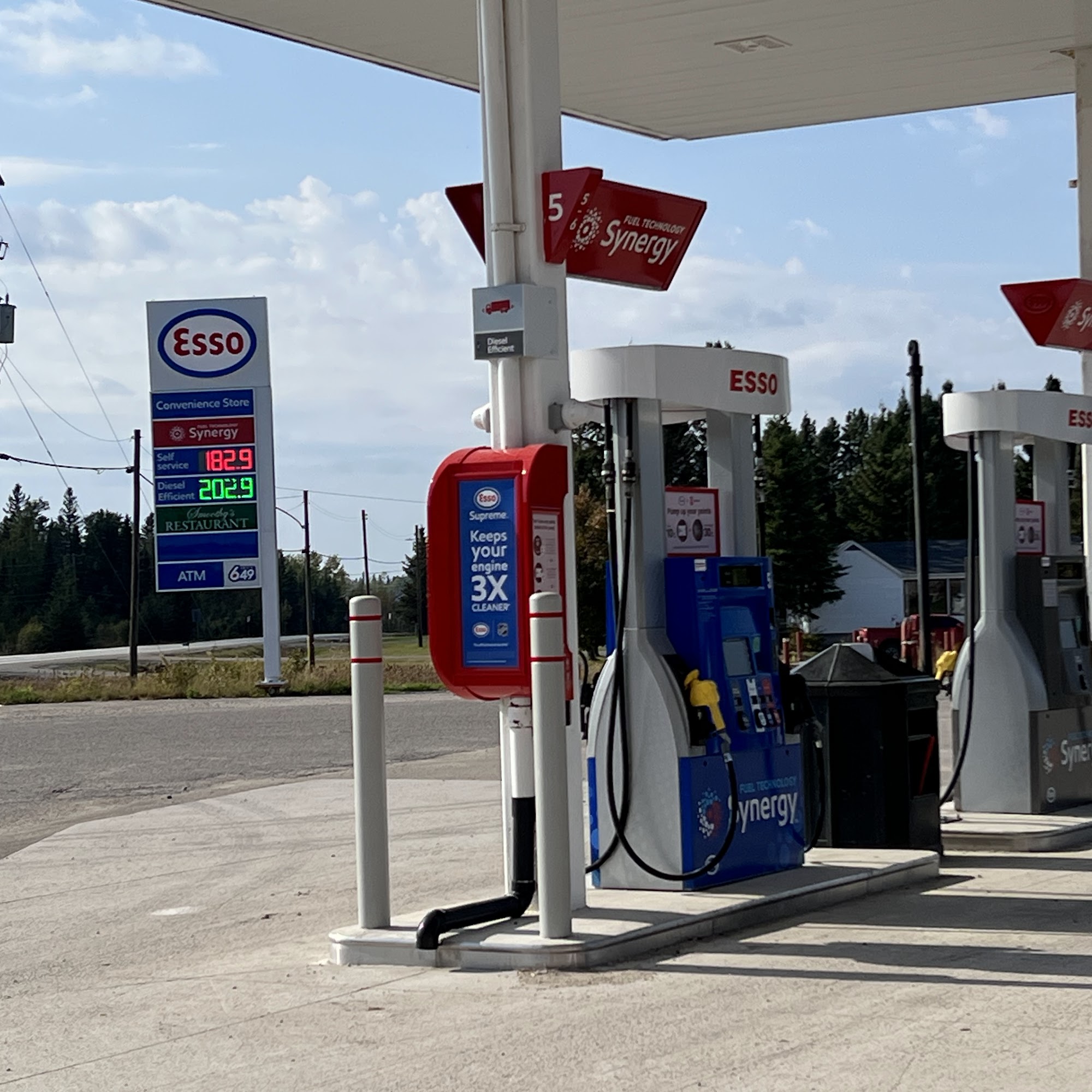 Esso is a gas station that provides fuel and PC points for customers. The pumps are noted to run slower than at other places, but the station features newer pumps and recent renovations. However, there is a considerable amount of empty space in the store, and the lack of products can leave a less favorable impression. Despite this, customers enjoy good coffee and appreciate the friendly service from the staff, making it a decent stop for gas and refreshments on the way to Pasha Lake.