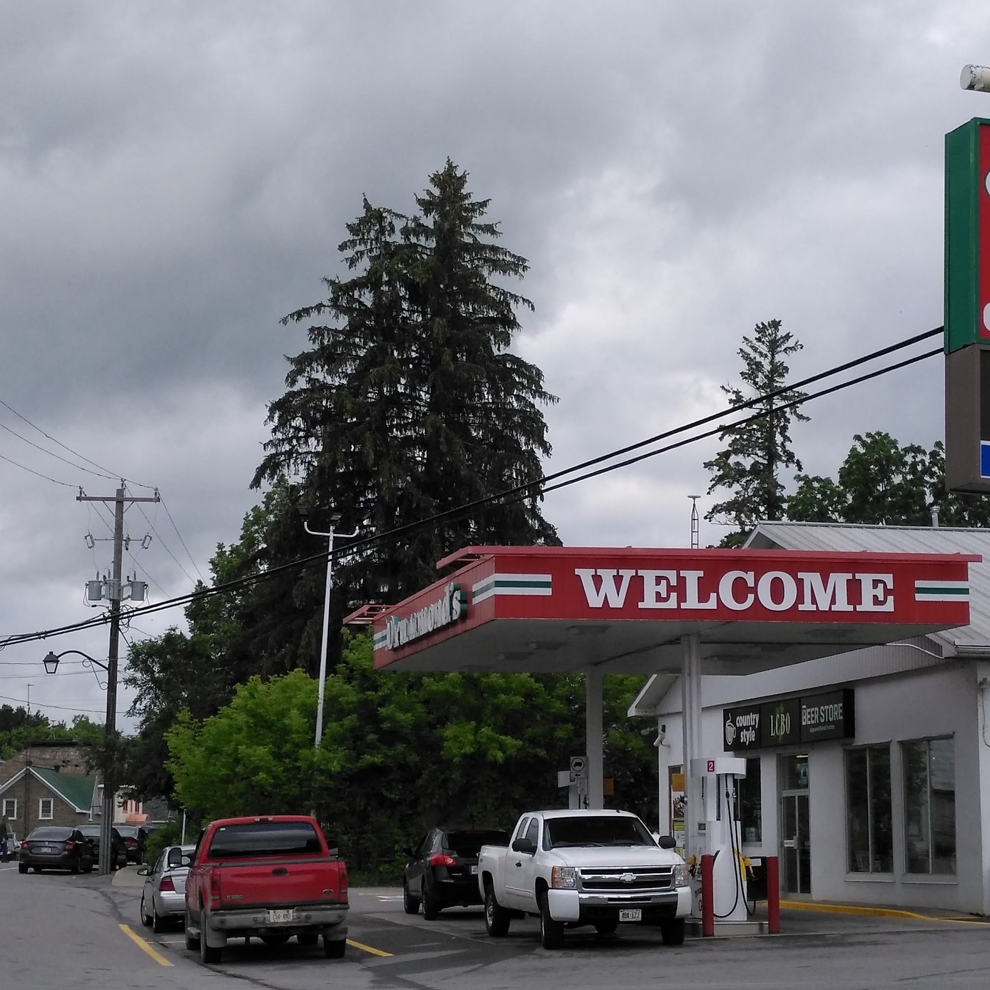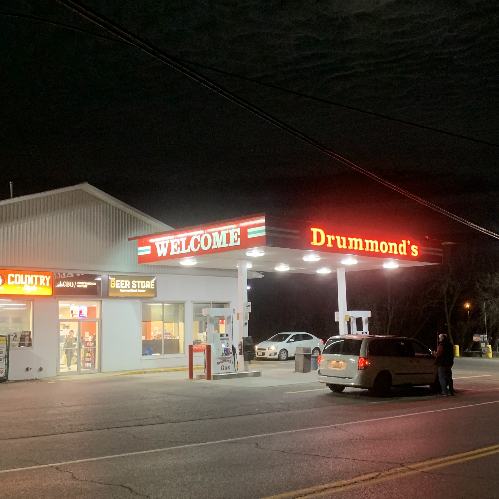 Drummond's Gas in Spencerville is a great stop for travelers on Highway 416 to Ottawa or Highway 401. It is a true local gem and a rare gas station along the route. It is much more than a gas stop, offering gas and diesel, snacks, a convenient Country Style coffee shop, a Beer Store/LCBO, a small grocery section, propane tanks, water bottles, coffee and alcohol, and free air. The location is perfect, opposite the beautiful historic Spencerville Mill where you can stretch your legs or sit by the river for a rest. It is also across from the Village Pantry. The staff are always polite, friendly, and make you feel welcome, providing really great and helpful service. The washroom is clean and spacious. It is a great place for a pit stop on a long drive, offering everything needed with genuine small-town charm. It is a small-town spot that is quick into town and back to the highway. This very amazing place is highly recommended.