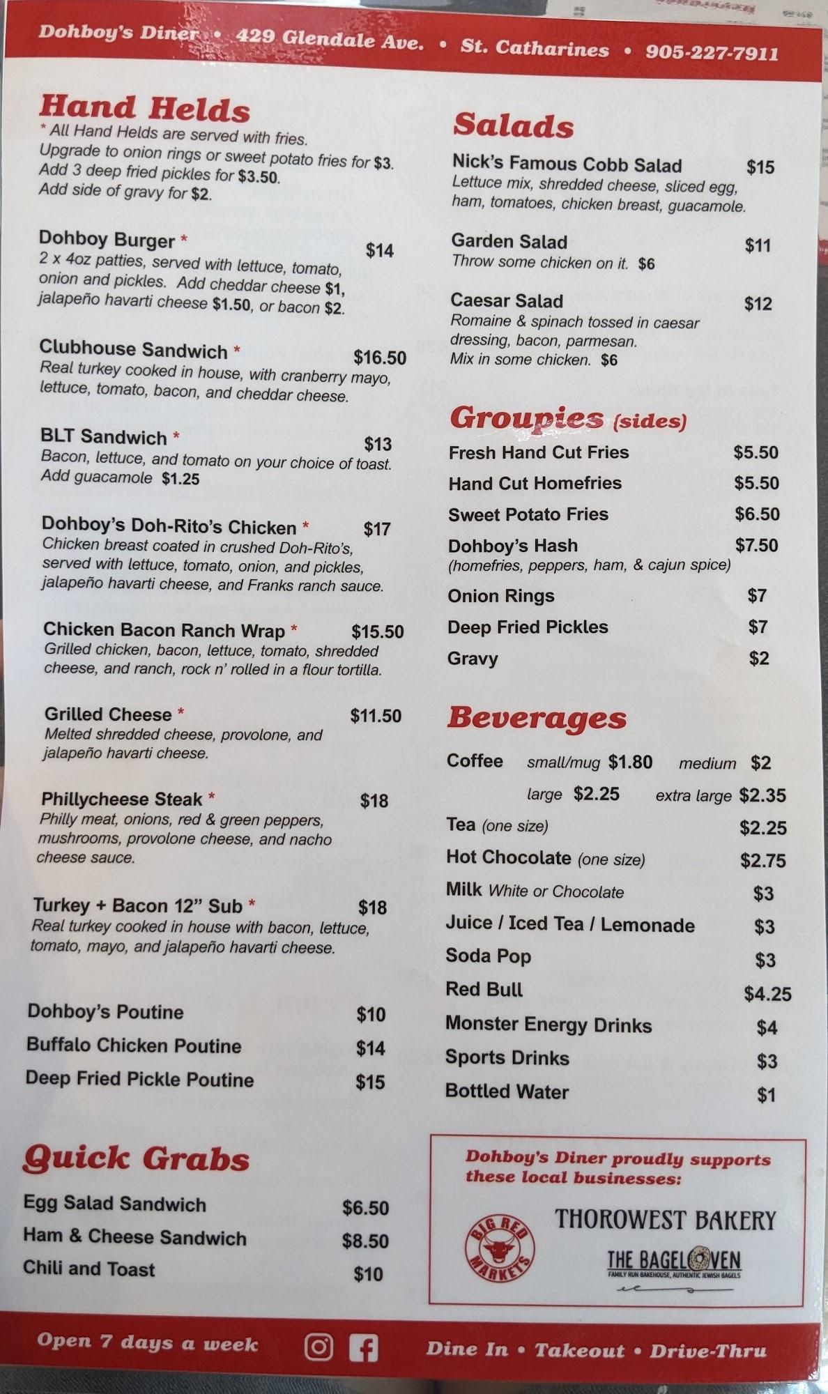 Dohboy's Diner in Merritton is a traditional rock-themed diner with a welcoming atmosphere and homestyle food. The staff is friendly and exceptional, and service is quick. Reviews highlight delicious breakfast food, including the breakfast poutine, with good portion sizes for the price. The classic rock background music adds to the fun, cozy vibe. While the food is generally satisfying and decent, some notes mention a charge for coffee refills and an issue with dry toast. The diner also features a drive-thru with a limited menu for faster service. It is considered a pretty standard, pleasant spot for a casual breakfast or lunch.