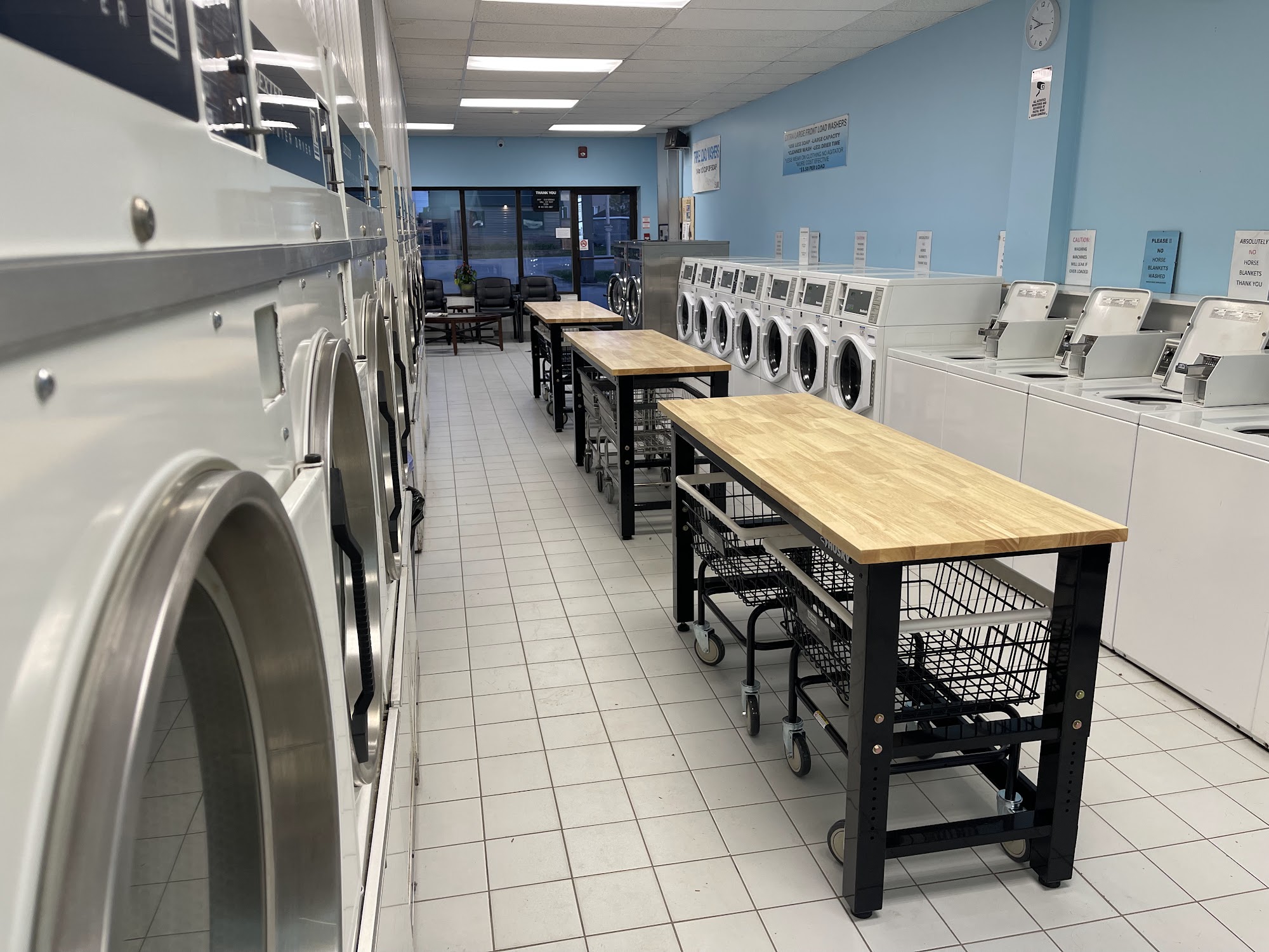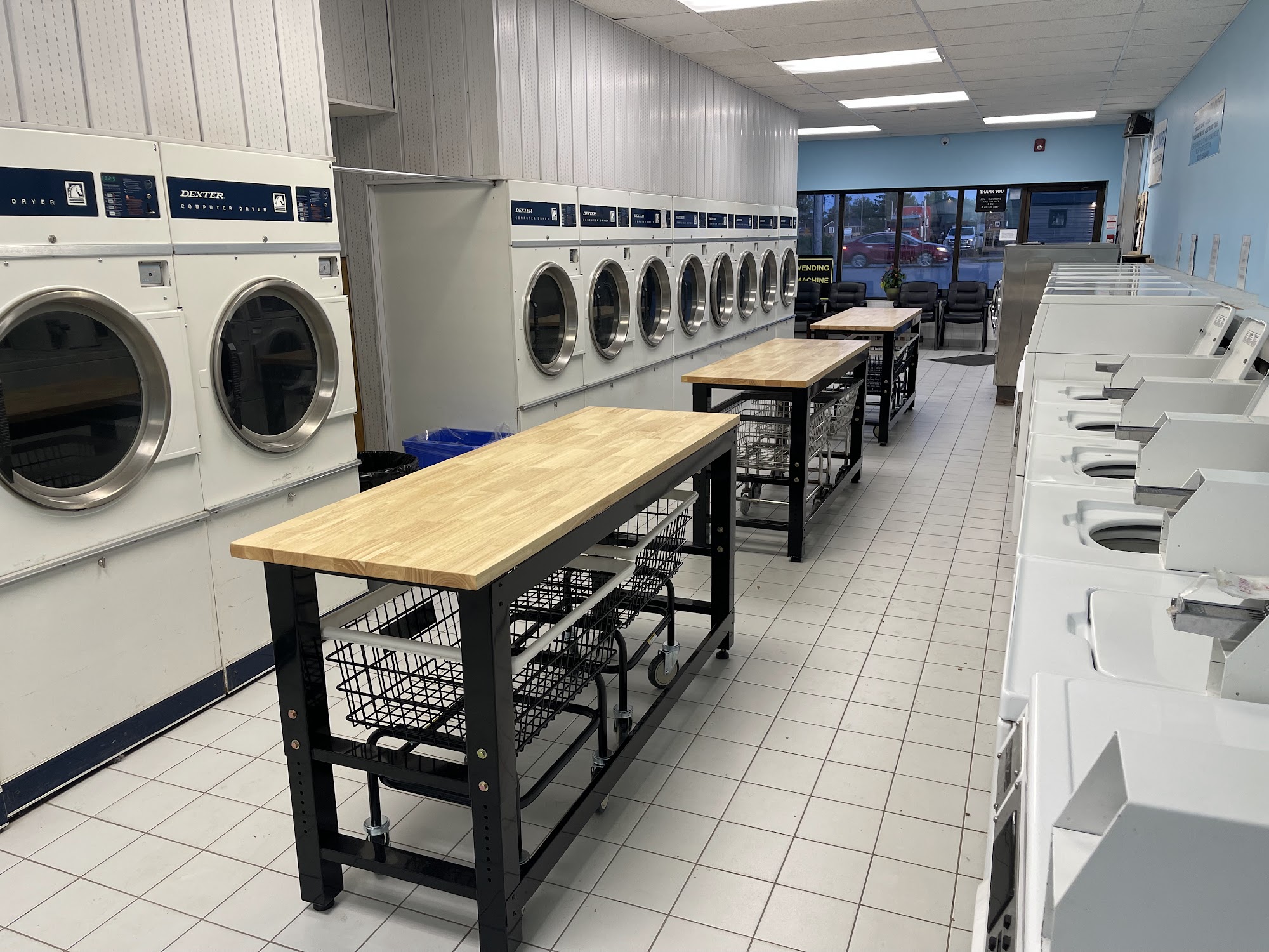 Laundry Station - Laundromat is a modern and clean facility open 24 hours a day, providing a safe and monitored environment for customers. The laundromat features a range of machines, including two Dexter MAXI load machines for larger items, triple load machines, and top loaders, all at affordable prices. Efficient dryers are available for only $0.25 per five-minute cycle. The business recently introduced a popular Wash & Fold service, which has received excellent feedback for its quick turnaround and neat results. Customers appreciate the clean, freshly painted interior and the various payment options, including cash and mobile payments. The new owner has made significant improvements, including upgrading the atmosphere with a TV, comfortable seating, and a kids' corner for entertainment. While some machines may occasionally be out of service, the overall experience is enhanced by the attention to cleanliness and customer service. With convenient amenities like vending machines and Wi-Fi, Laundry Station aims to cater to busy lifestyles while offering a welcoming space for all.