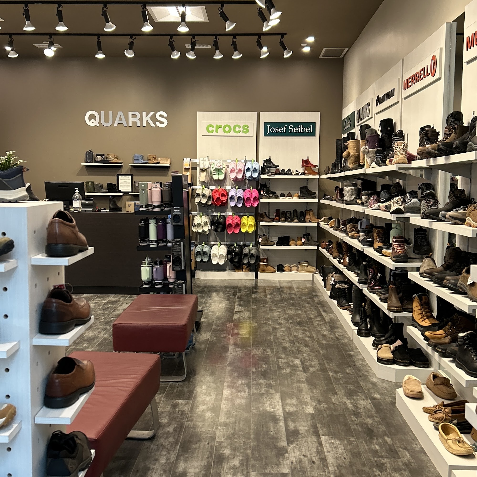 Quarks is a highly recommended store that offers excellent customer service and a wide selection of shoes. The staff, including the manager Colleen and Bianca, are described as helpful, accommodating, and knowledgeable. Customers have had positive experiences purchasing a variety of footwear, from dress shoes to hiking boots, with the staff going above and beyond to ensure the perfect fit and meet the customers' needs. The store is praised for its great atmosphere and the staff's expertise in finding the right shoes for their customers.