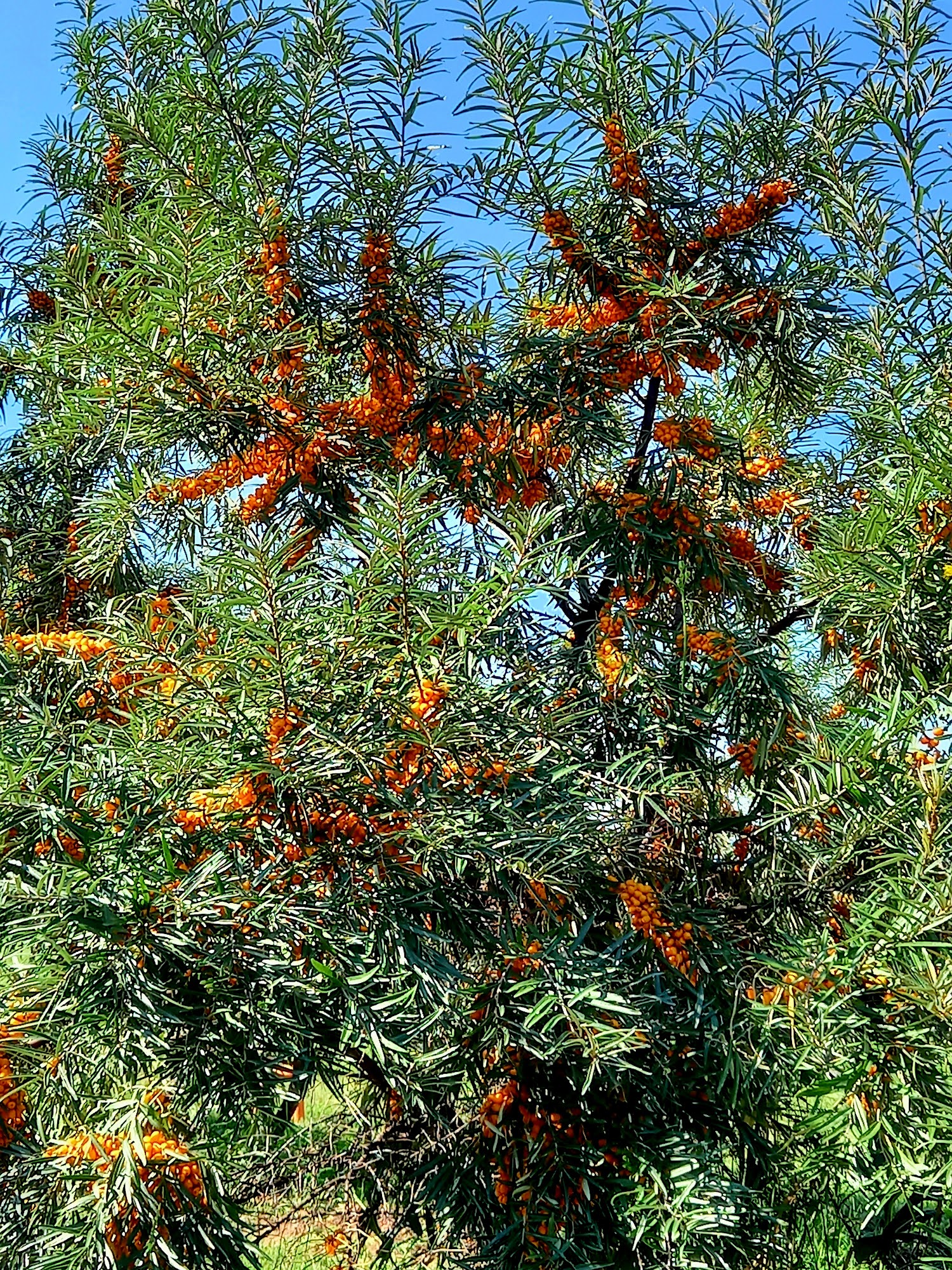 The Healing Arc’s Sea Buckthorn Orchard lies on beautiful, rolling, Bruce County farmland just north of Wingham, Ontario. It is the first fruit producing Sea Buckthorn Orchard in Ontario. Owner, Marlene Wynnyk has worked on several agricultural research projects in the quest for plants that can be grown on marginal land in Ontario and can be used in the functional food and nutraceutical industry. Today the orchard resembles a tropical paradise with trees laden with brilliant orange fruit from late July until early October. The berries with their tart citrus flavour are nutritional, refreshing , versatile and Local … Perfect. Sea Buckthorn has been used for centuries as a food and for its pharmaceutical properties.