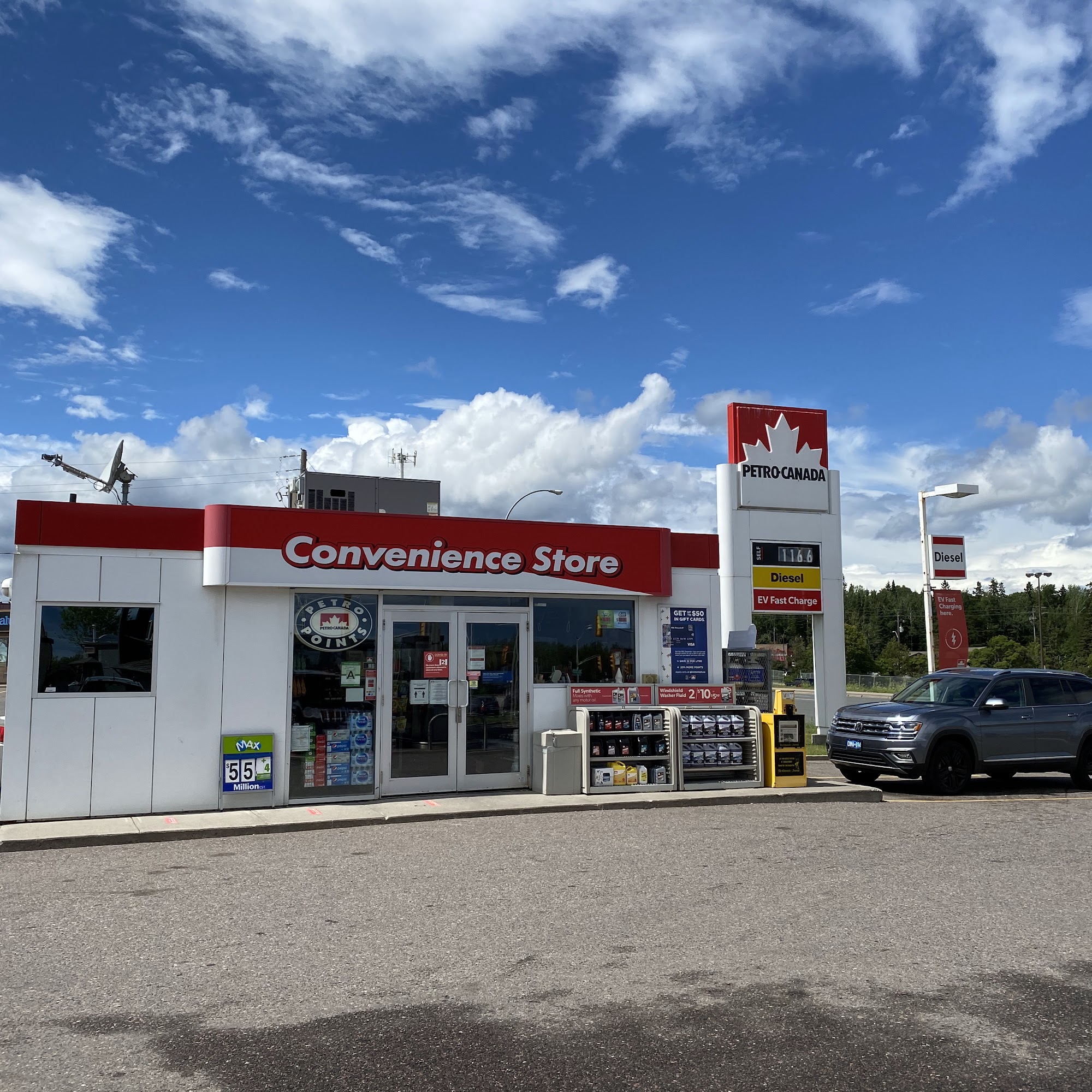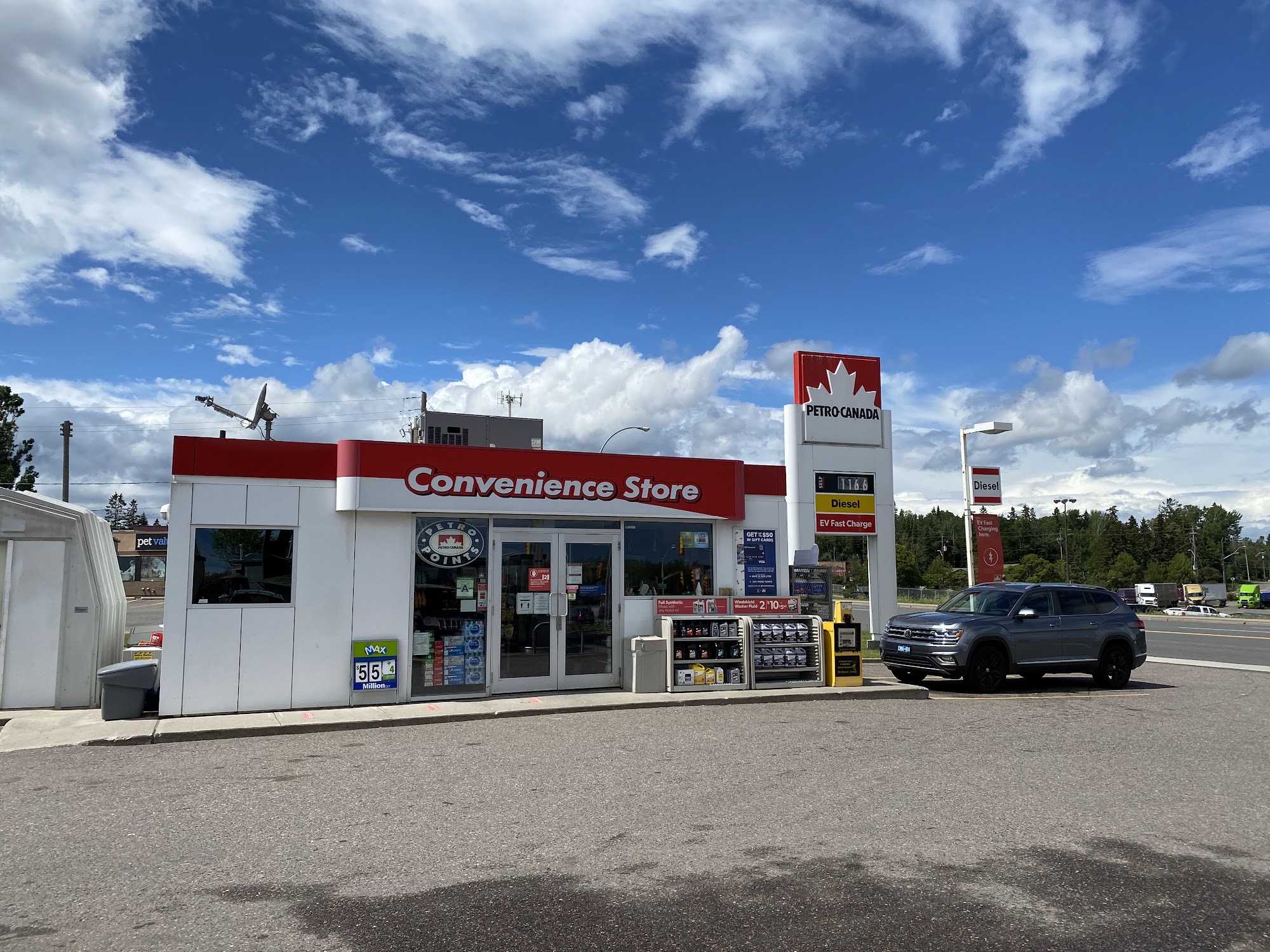 Stopped here twice during our 2022 trip. Once on way out, and once on way home. Competitive price. Right on main road if you are trying to avoid the heart of Thunder Bay. Across street from a large food store and a Walmart and several eating places. Paid at pump so no comment about staff.