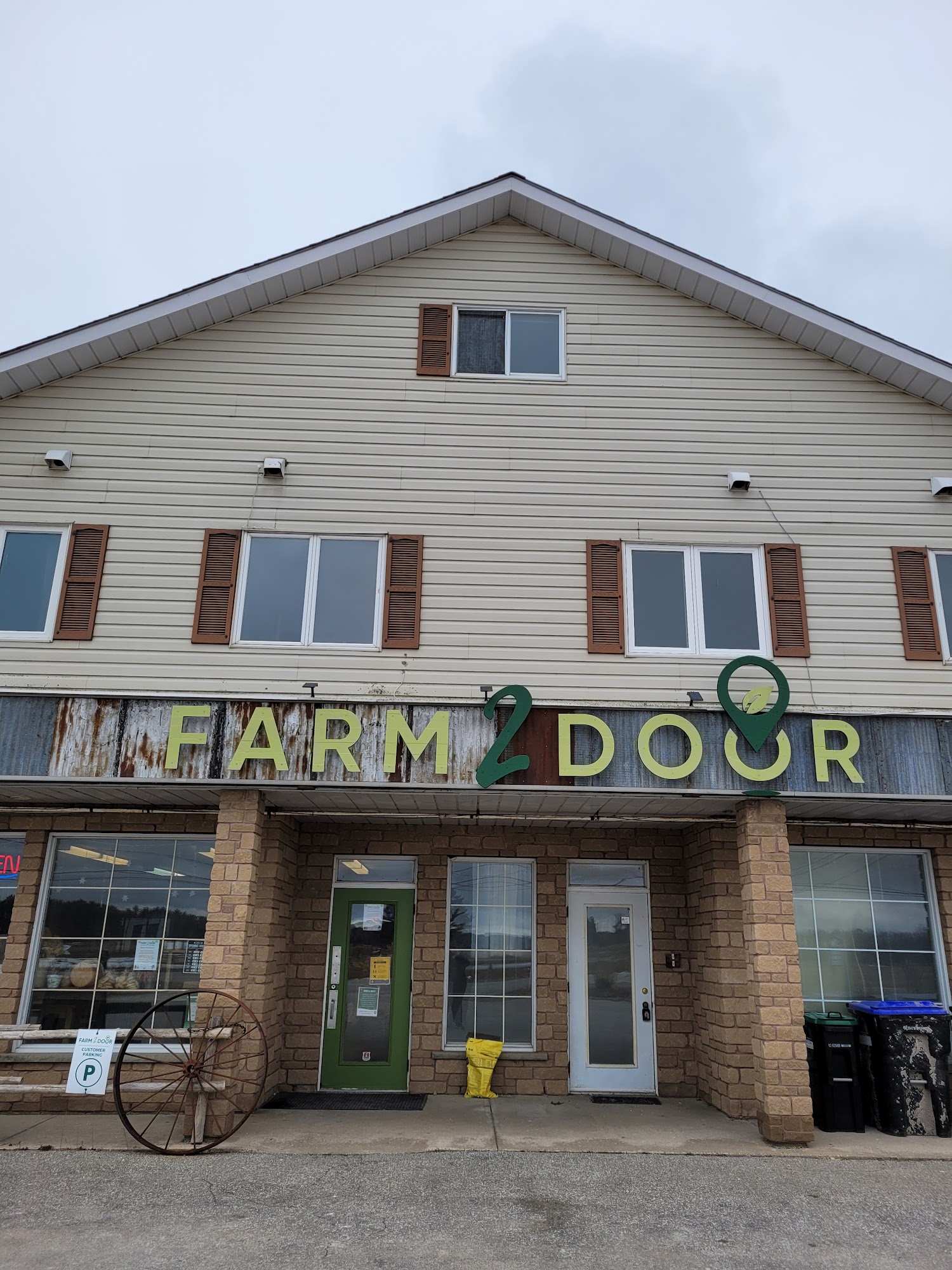 Farm2Door is an online farmers market and local food delivery service based in Ontario, serving Tiny Township, Penetanguishene, Midland, and Tay Township. The grocery store features locally grown vegetables, sustainably raised meats and fish, award-winning cheeses, and small batch products. Customers appreciate the excellent frozen meats from Harley Farms and the fresh baked goods, including amazing sourdough bagels and delicious cookies. The friendly and knowledgeable staff provide outstanding service, helping shoppers explore the store's unique offerings. While some items may be priced at a premium, the great variety of quality local products makes Farm2Door a valuable resource for the community. Deliveries occur on Wednesdays and Saturdays.
