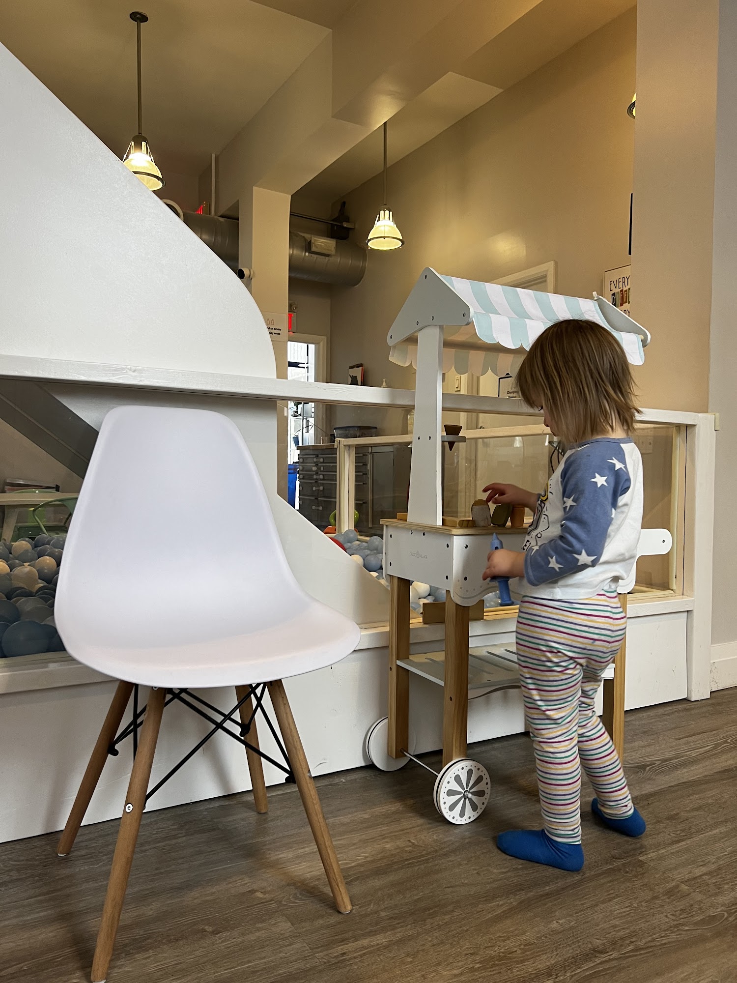 Cute cozy modern play space for kids. My 3 and 1 year old enjoyed. Very thoughtfully made with a fully stocked diaper changing station as well. The cafe has a good options overall. Staff if very friendly. We highly recommend it.