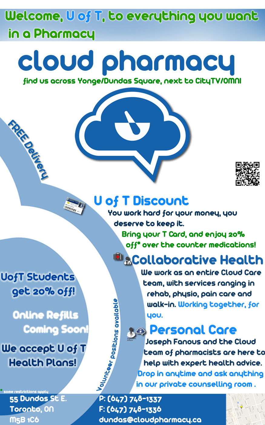 Cloud Pharmacy is located in downtown Toronto and serves students, seniors, PrEP patients, and the wider community. Reviews describe it as the best clinic and pharmacy with amazing, incredible, and highly recommended service. Customers report really fast and quick service with prescriptions always right on time and no issues with pick-ups. The staff is super friendly, helpful, and attentive, always going the extra mile with a pleasant attitude and a smile. The pharmacy is kept extremely clean. Features like text alerts are helpful, making the medical experience feel less daunting. Many state it is their best pharmacy experience, that it goes above and beyond, and doesn’t compare to other pharmacies.