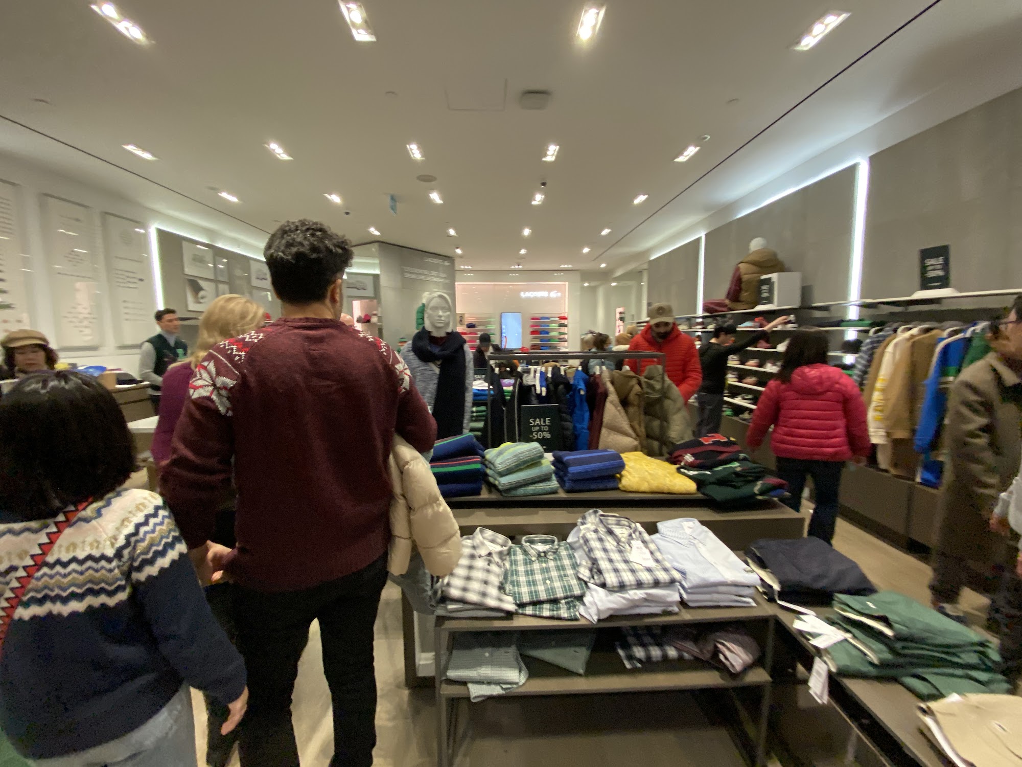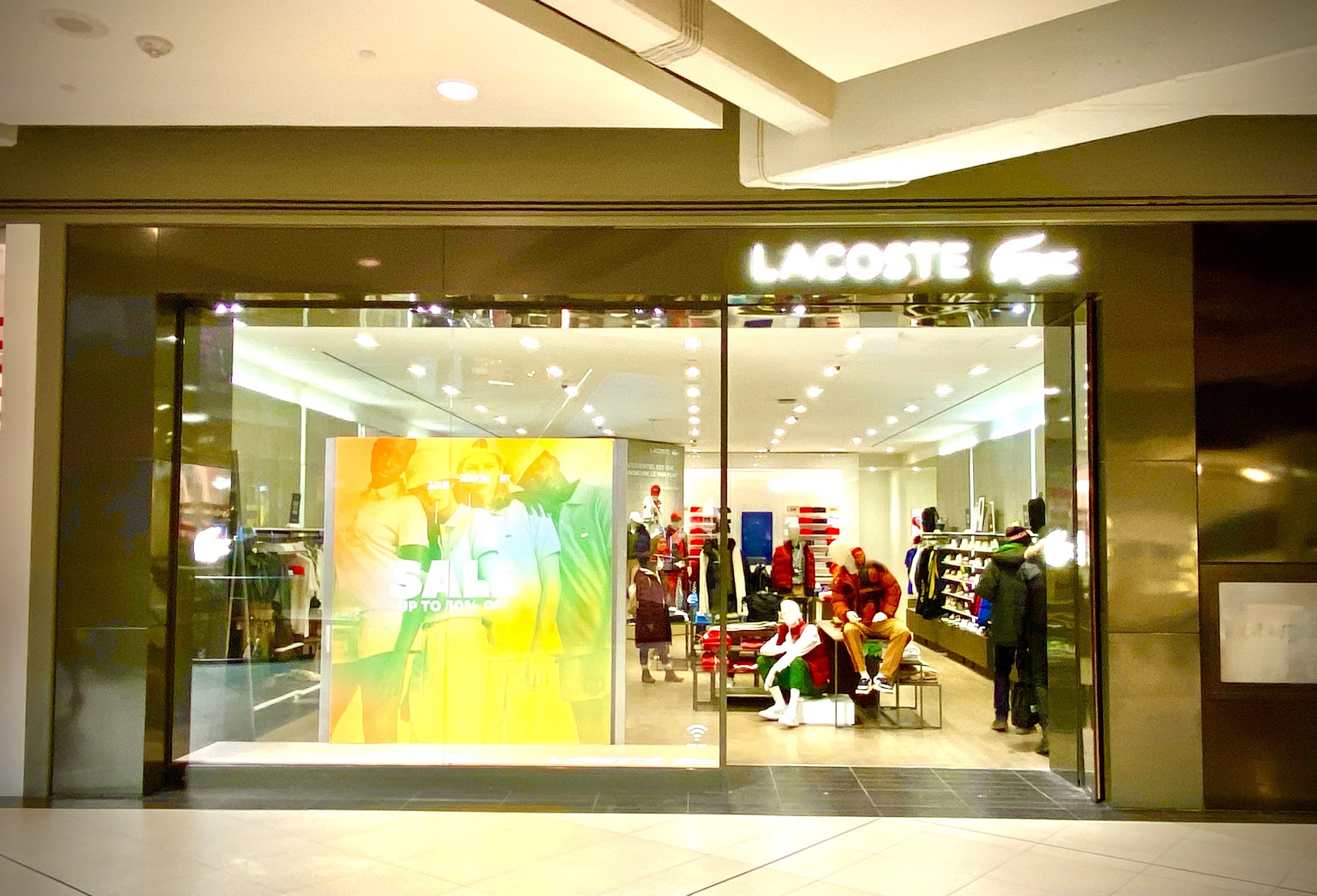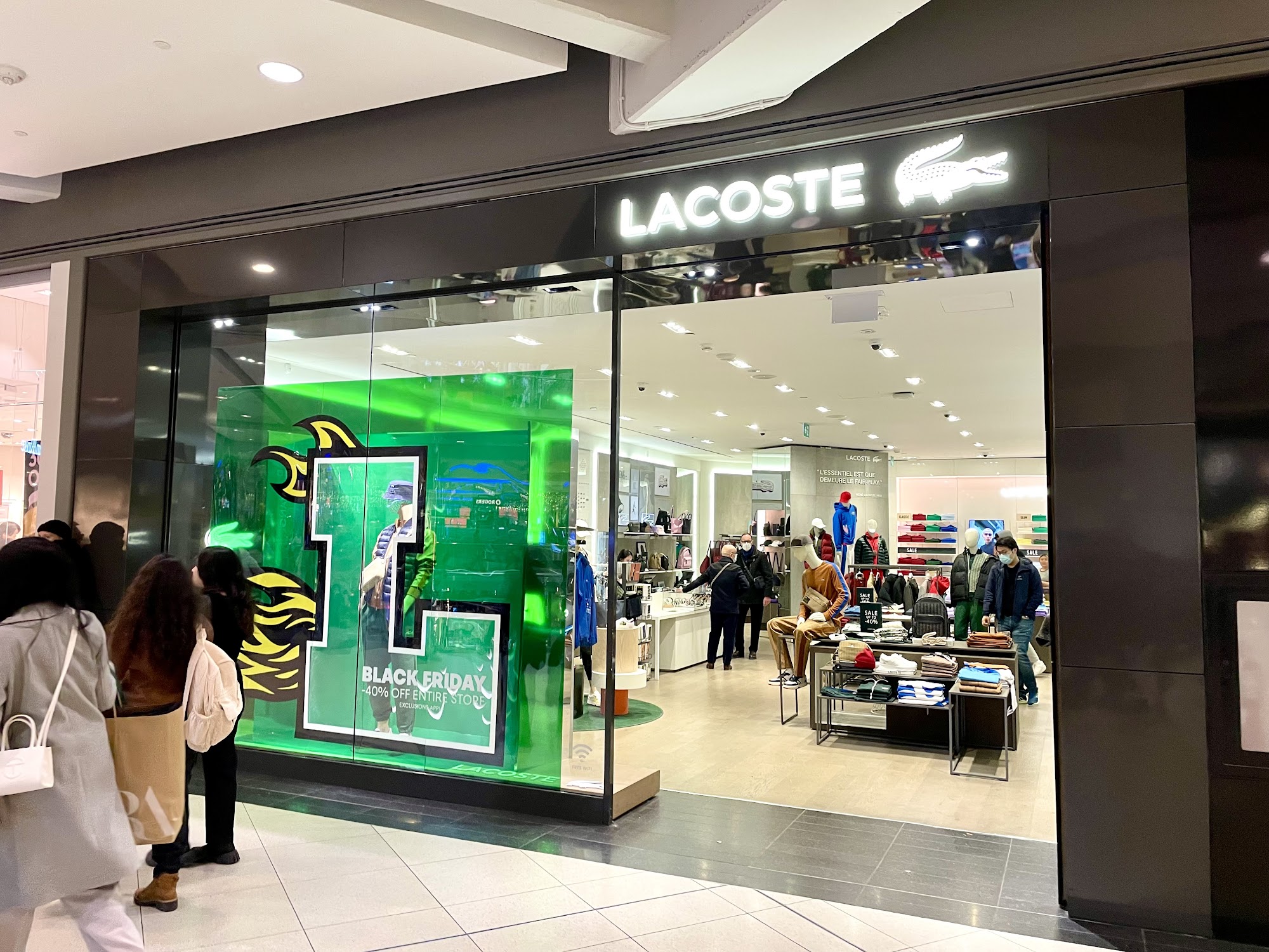 Lacoste TEC is an iconic brand with a crocodile logo, renowned for its groundbreaking polo shirts and wide array of sport and sportswear for men, women, and children. The store offers a wide range of colors for all seasons, plus shoes, sunglasses, watches, perfumes, leather goods, and accessories. It is described as the best location to go to, with a super friendly and warm store. The team provides amazing, exceptional, and more than helpful service, making shopping experiences smooth and accommodating. Staff are noted for being very pleasant and assisting with a smile, even helping after closing time or arranging shipments. The store is currently offering a forty and fifty percent off discount.