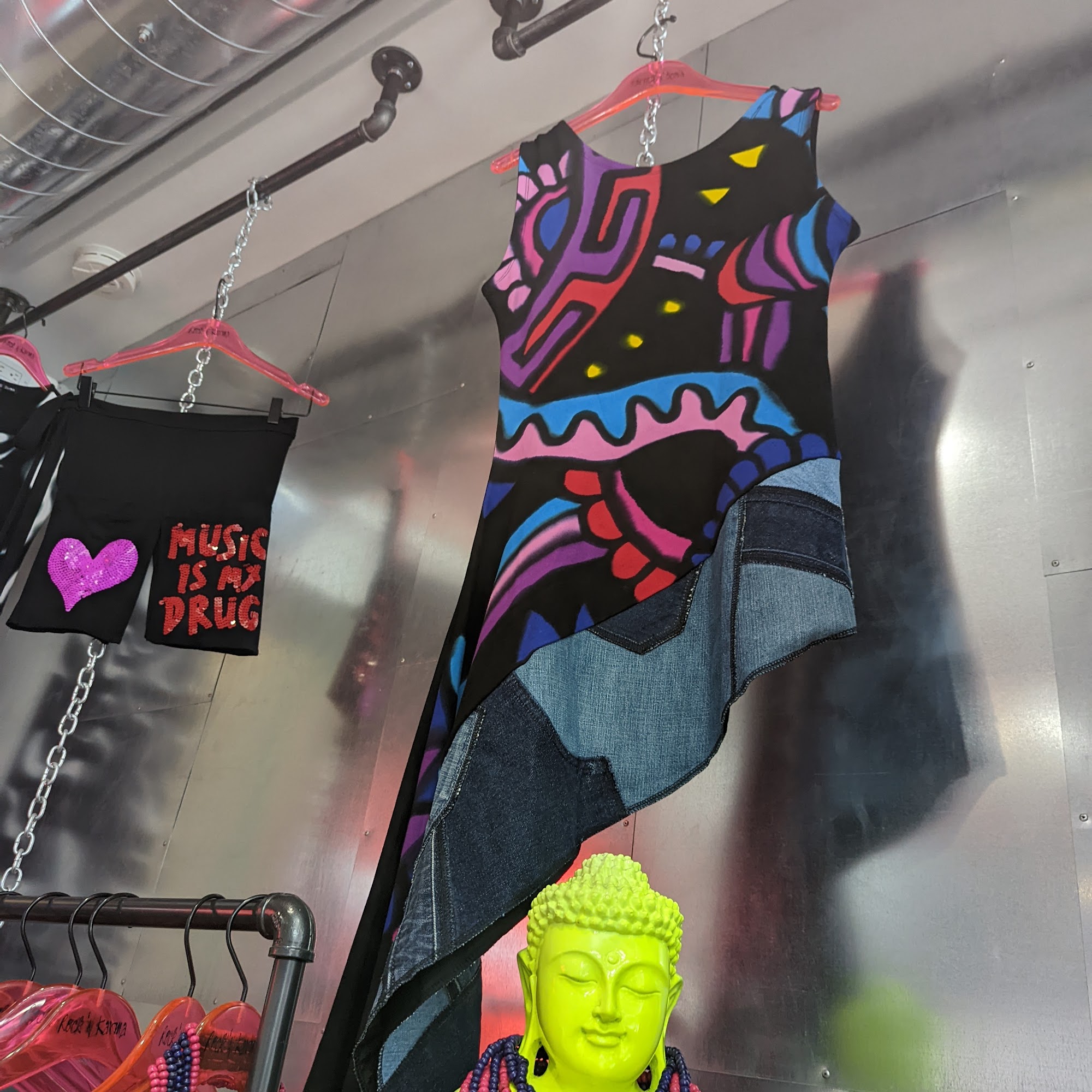 Rock 'N Karma is a Toronto-based creative sister duo. They take streetwear chic to a whole new level with truly unique contemporary designs. Their pieces are infused with quirky slogans and original motifs, using a trademark “miracle fabric” and hand-embellished technique. The store offers everything from solid black staples to fun, artsy, rainbow, and whimsical one-of-a-kind items. The quality is incredible and everything is so comfortable and lasts for years. Every item feels unique and easy to wear. The staff are super friendly, kind, and helpful, putting their souls into the business. Each piece is carefully created. Customers report a great experience, falling in love with the items and the spectacular store. The wonderful and talented designers have been in the fashion industry for 25 years, making it a pleasure to support them. Many find it the kind of place everyone should experience at least once.