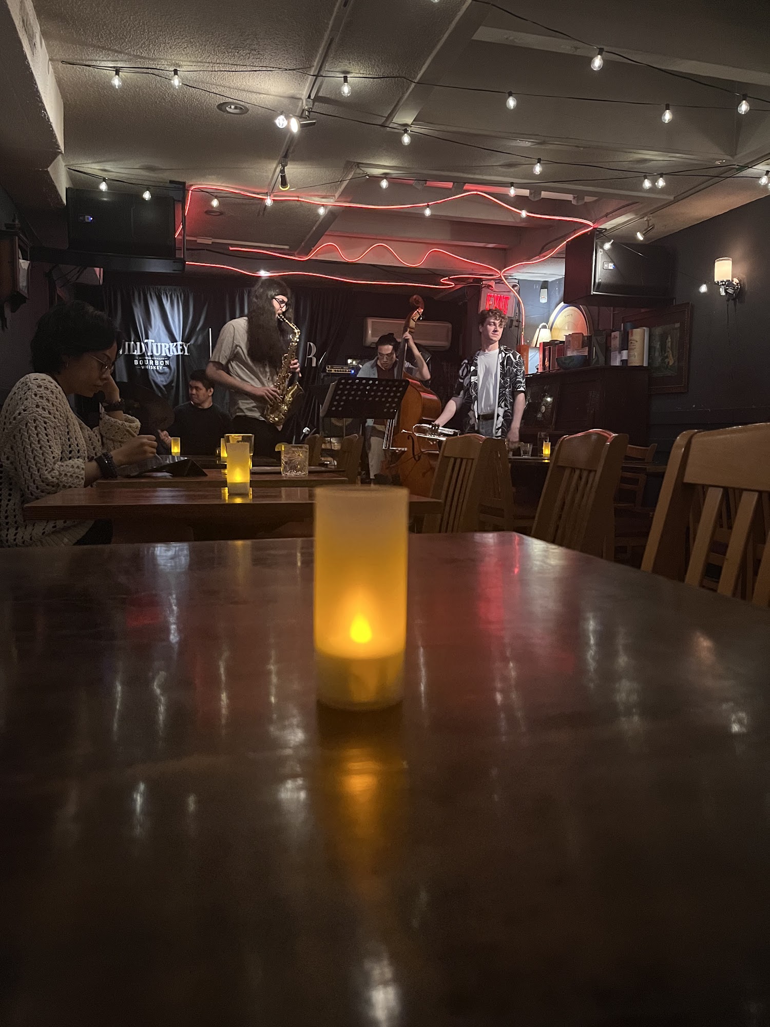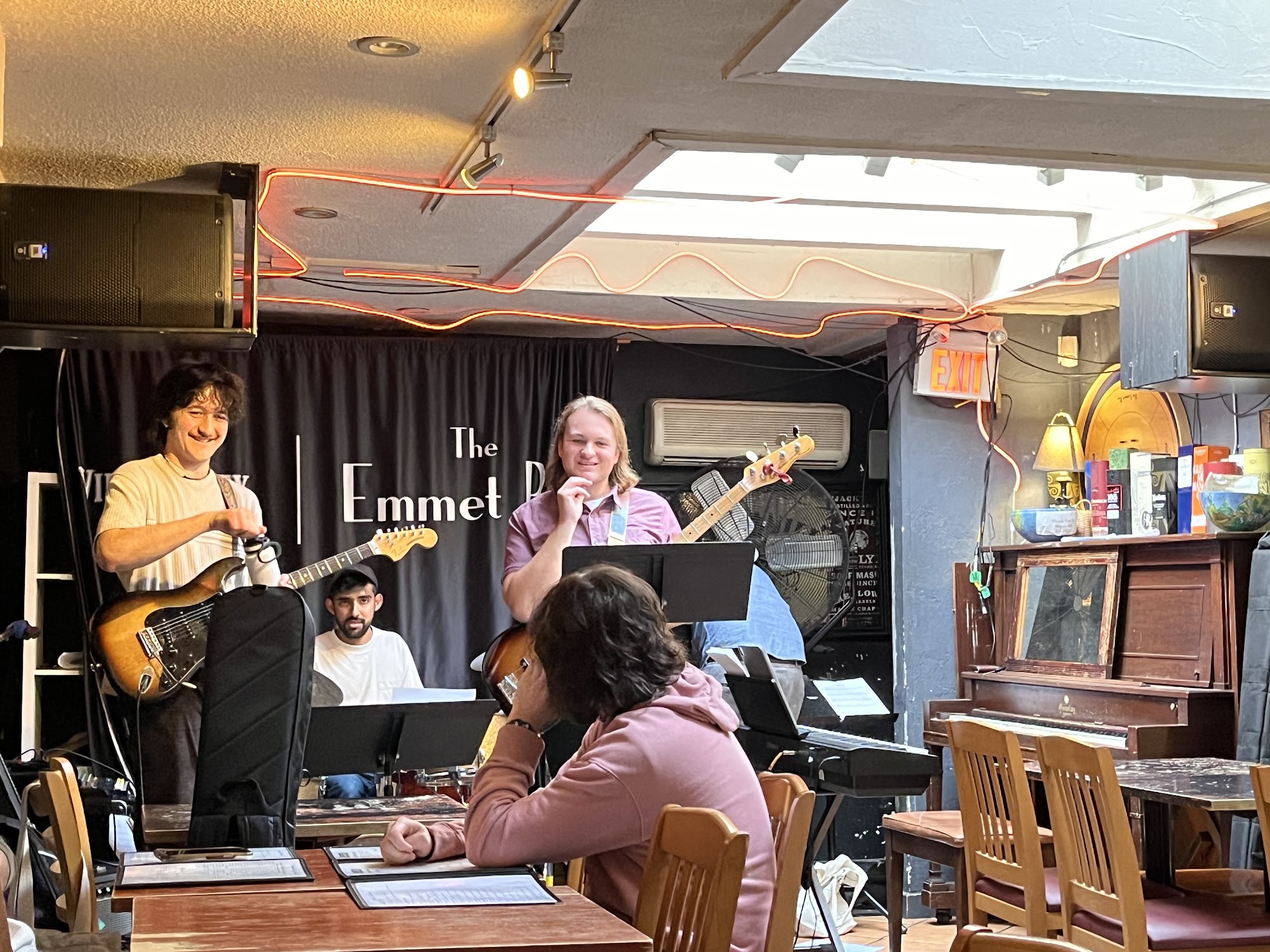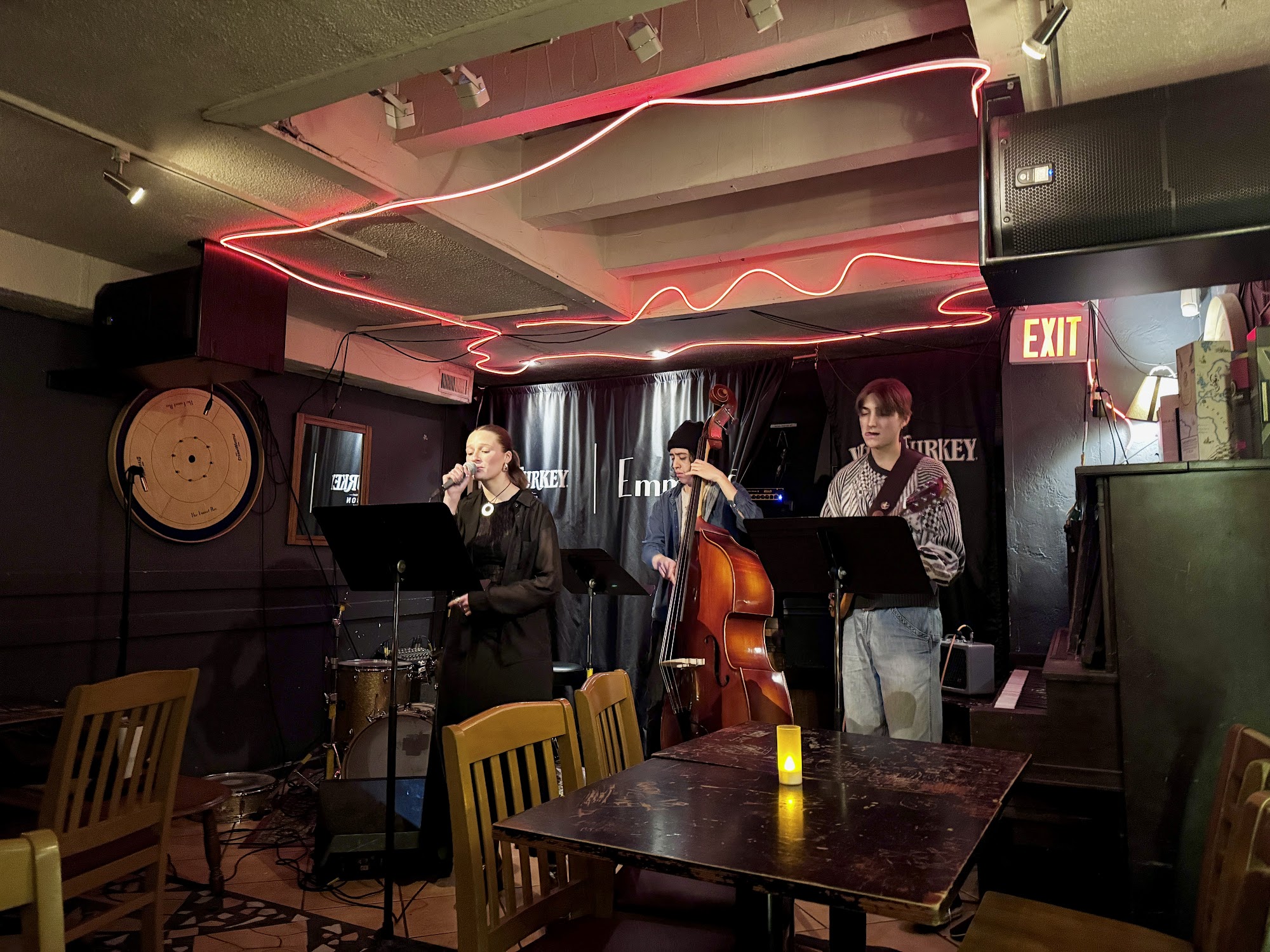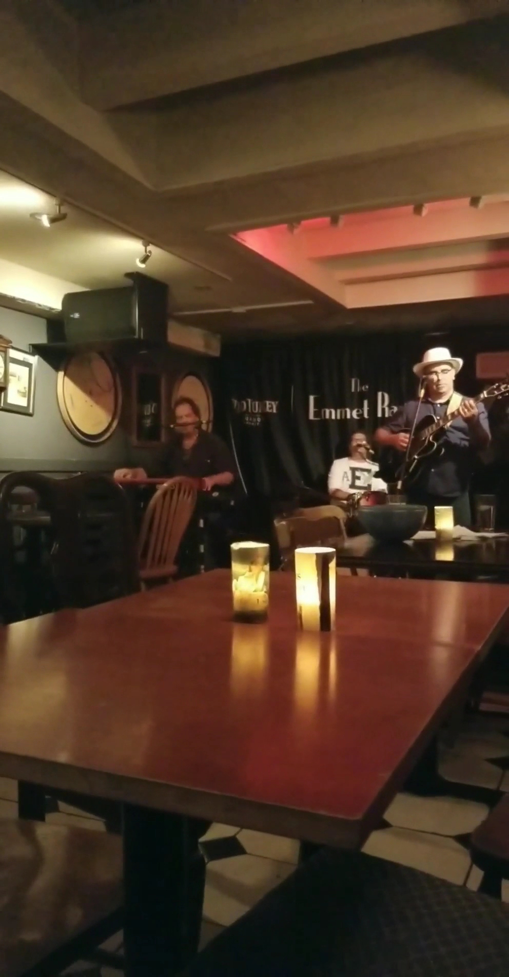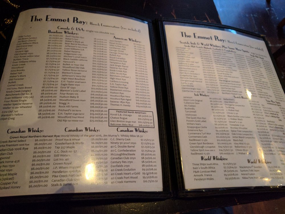 The Emmet Ray Whisky Jazz Bar is a perfect, cozy neighbourhood bar and a great destination for a whole night. It is an incredibly comfortable, inviting, and accepting place that feels like hanging out at a friend’s house. The bar offers great food, including delicious comfort food like warm olives, hummus, Brussels sprouts, steak and fries, pasta, and an amazing chicken sandwich. The service is incredibly friendly and helpful, with knowledgeable bartenders. It features live music all the time, with multiple shows per night performed by insanely talented musicians and bands, offering incredible vocals and amazing musicianship. There is a perfectly reasonable cover charge. The layout has no separation between the music room and the rest of the bar, allowing guests to sit at the bar or at tables farther back to hear the music while having a less formal experience and freedom to talk. The whiskey selection is large without being overwhelming, carefully curated, with a full menu of clear pricing. The atmosphere provides a great vibe for enjoying a beverage and having conversations. It is a place with a clean bathroom and comfortable seating, where there is no obligation to buy food. The Emmet Ray is considered the best neighbourhood bar, delivering an excellent experience that comes highly recommended.