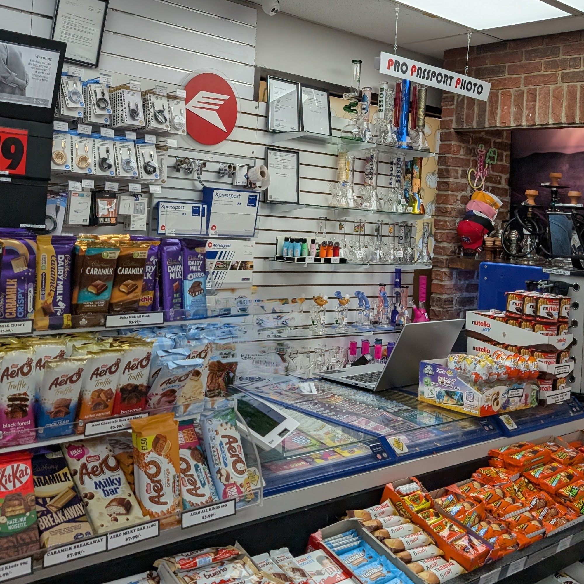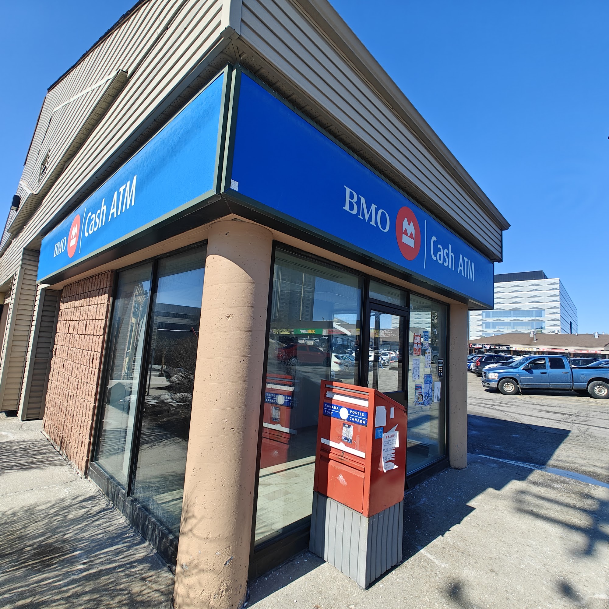 Canada Post is not a full service post office but it is enough for very simple mail. The mailbox is hidden and hard to find. They accept package drop off, but only with a pre-printed label. Do not send parcels to this location, as it does not appear as an office on the website, which can cause delivery issues. Farah Foods nearby sells envelopes and stamps.