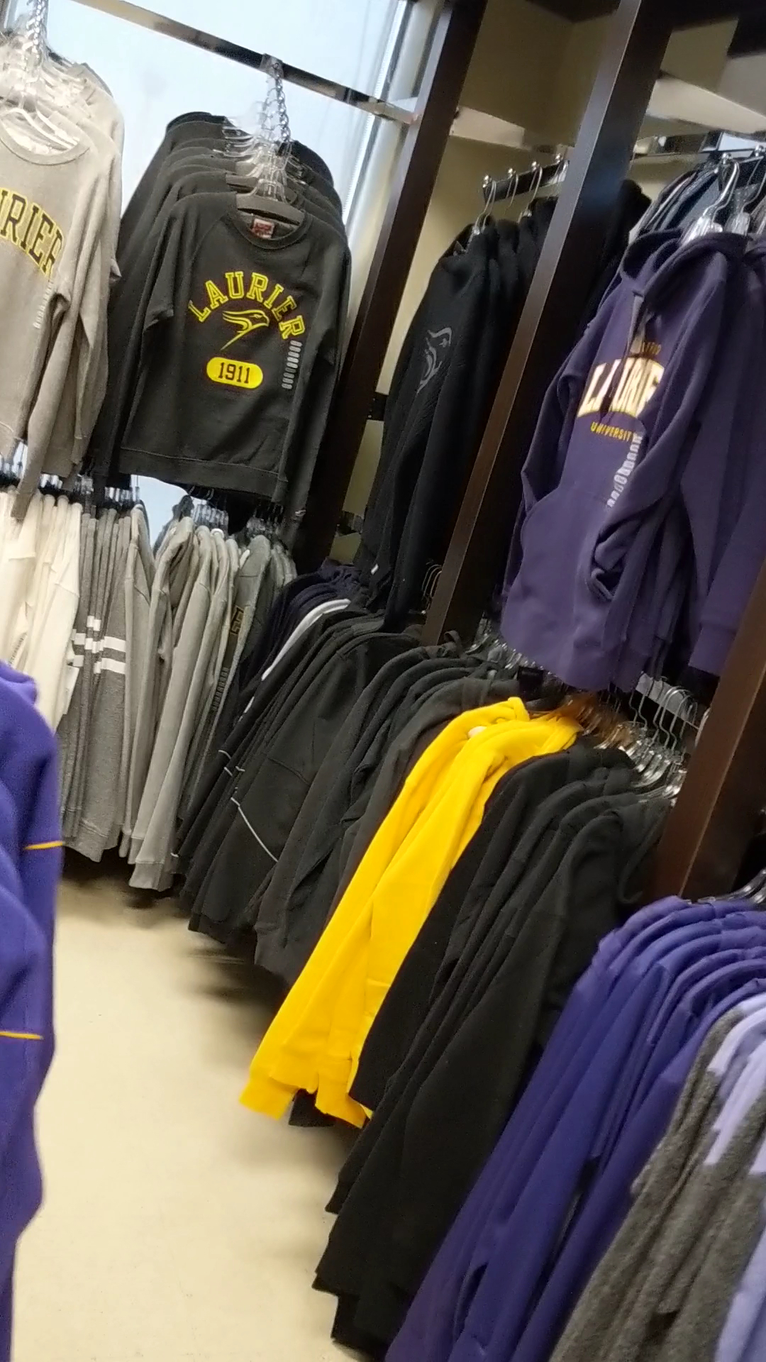 only overpriced merch remains. thank you late stage capitalism for this dystopian hellscape of purple and gold. it's great to be a laurier golden hawk.