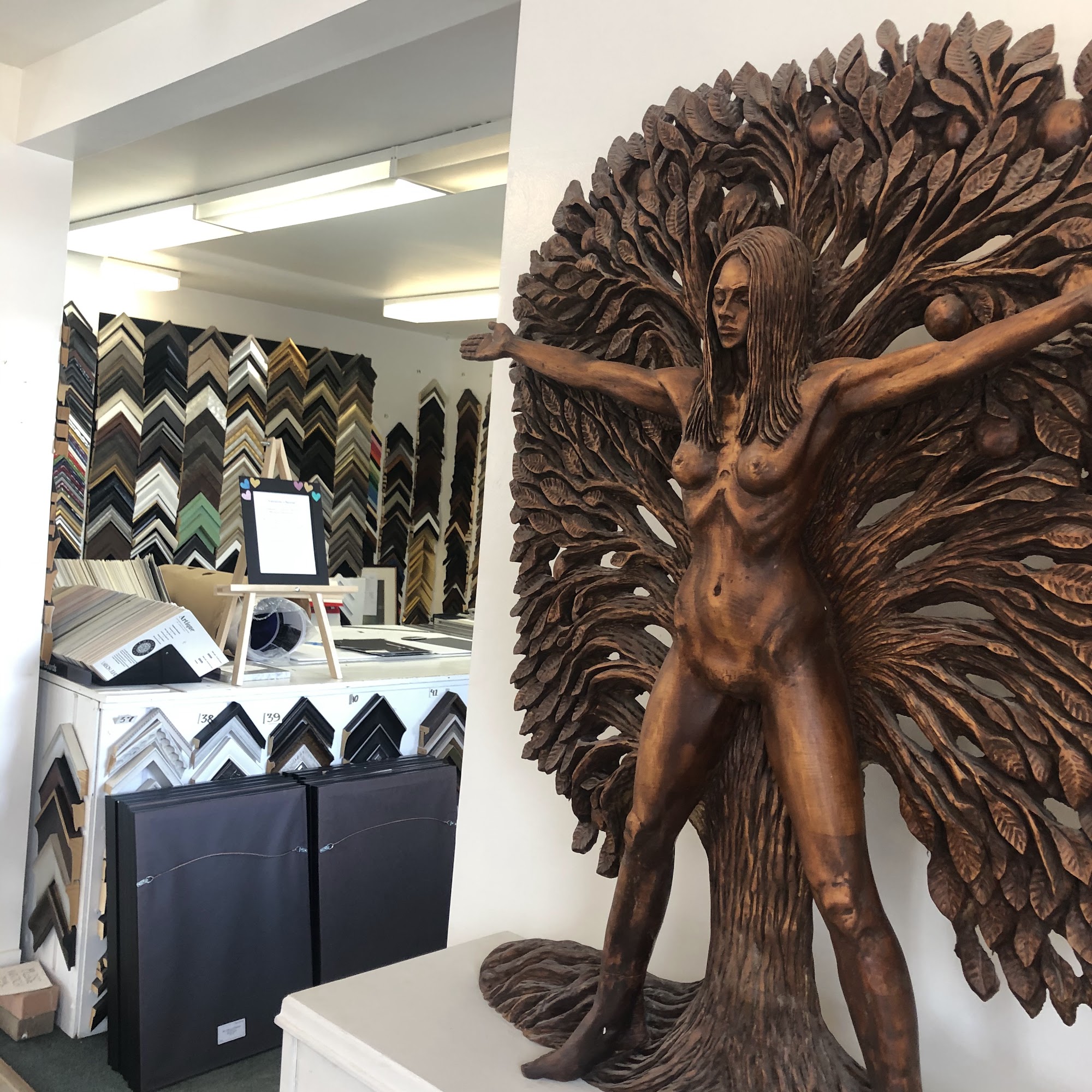 The Artstore is a popular local business known for its friendly staff, knowledgeable service, and wide selection of art supplies at reasonable prices. Customers appreciate the store's welcoming atmosphere and its commitment to showcasing the work of local artists through the "People's Gallery." The gallery features local artist Jim Schmalz, adding to the inspiring environment. The Artstore also offers framing services, with customers praising the quality of work, attention to detail, and helpfulness of the staff in selecting the right materials. One customer shared a positive experience getting a mirror framed, noting the sturdy construction, perfect corner matching, and helpful advice on paint touch-ups to match decor. The framing process is efficient, with quick turnaround times and often includes unexpected discounts. Overall, the store is highly recommended for both artists and those seeking professional framing services.