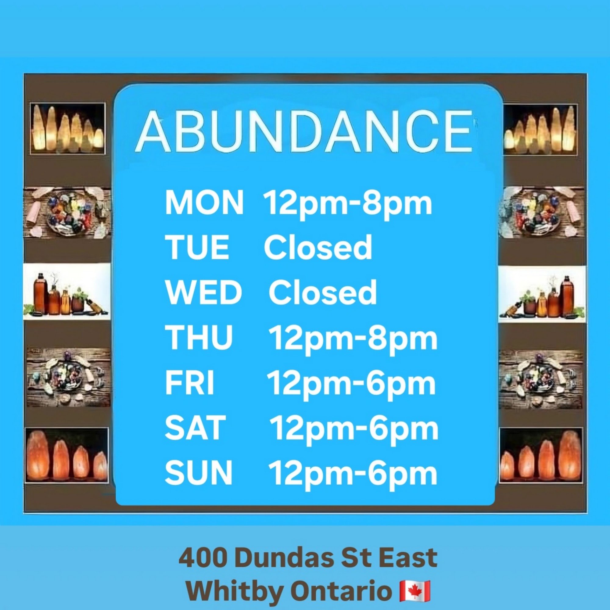 Abundance Crystal Essentials is a welcoming metaphysical store located in Durham Region that offers a wide variety of spiritual and self-help items. Visitors can find crystals, pendulums, wands, spheres, and crystal beads, as well as charms, string, and jewelry such as bracelets, rings, earrings, chokers, pendants, and anklets. The store features Buddha and Mandala art, dreamcatchers, suncatchers, and statues of Buddha, Quan Yin, angels, Celtic symbols, Egyptian motifs, and Ganesha. For creating a spiritual ambiance, there are candles, incense sticks, cones, coils, resins, oils, sage, sweetgrass, feathers, abalone shells, and Himalayan pink salt lamps and candleholders. The shop also offers affirmation, oracle, and tarot cards, spiritual and self-help books, essential oils, nebulizers, and witchy or skull-themed items. Customers consistently praise the friendly and knowledgeable staff, noting the positive and relaxing vibe upon entering. Many mention receiving helpful guidance on crystals for their personal needs and enjoying the store’s peaceful atmosphere. Overall, it is a great place to find unique items that promote love, light, and spiritual growth.