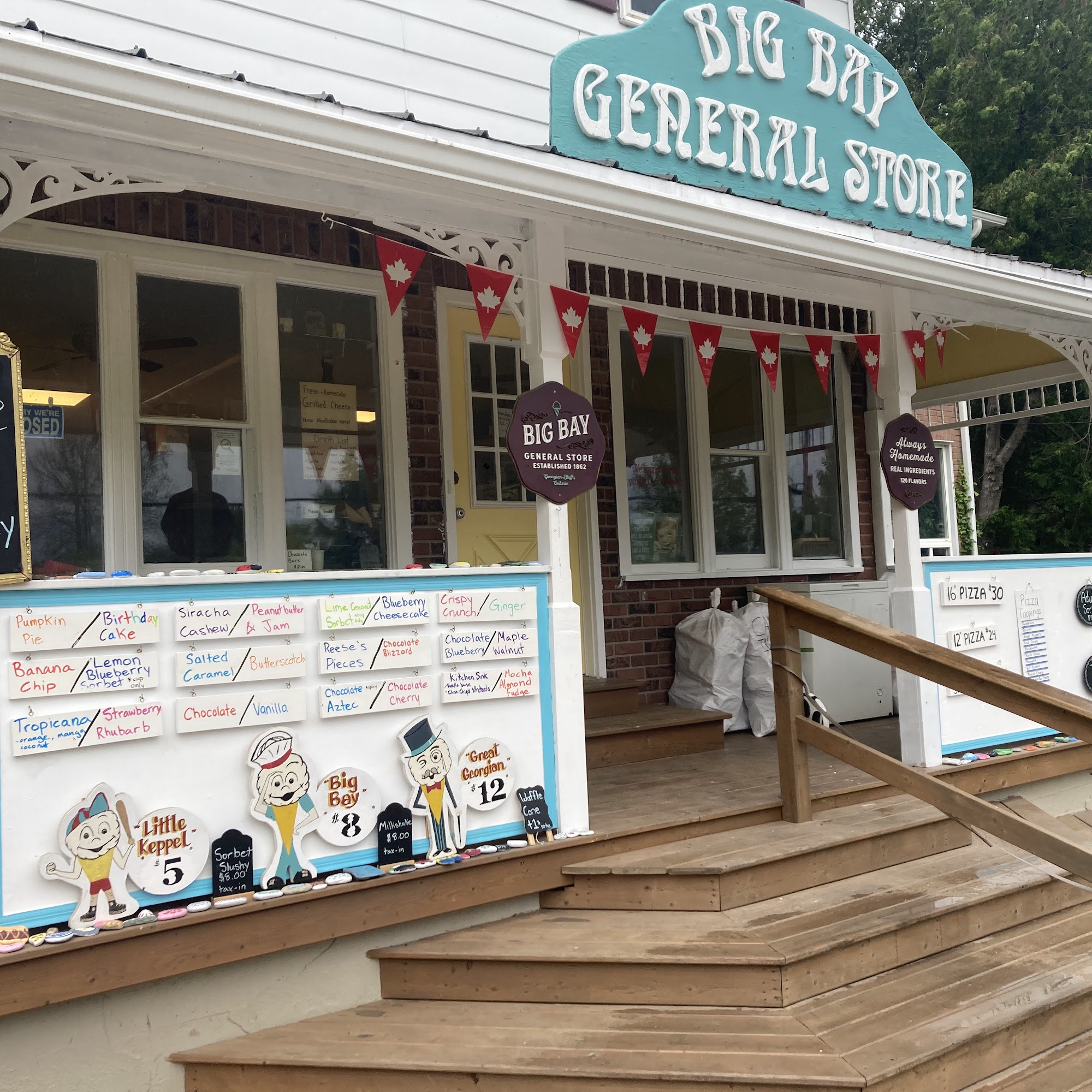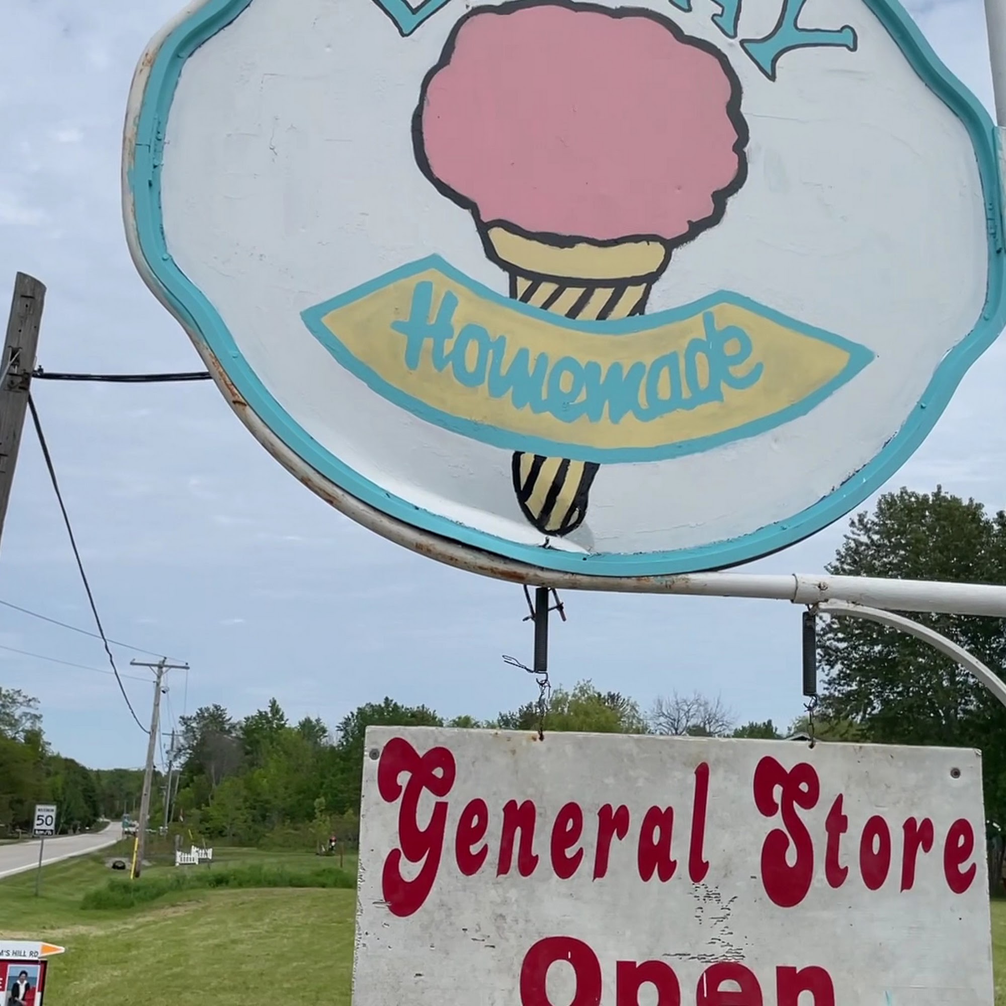They no longer operate as a general store. They only sell ice cream cones and pizzas. But the ice cream is delicious and a huge scoop!
