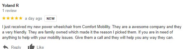 I’ve been very impressed with the Comfort Mobility staff. They demonstrate excellent communication skills, handle challenges with a positive attitude, and are always willing to go the extra mile.