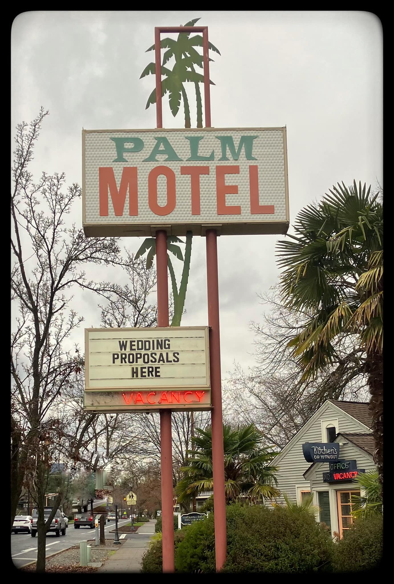 We stayed at the Palm Motel while at a preview day at SOU. The location was ideal, literally across the street. And we loved this cute, friendly, funky little motel... The room was clean, quiet and spacious, the kitchenette was a big plus, and the beds were so comfortable... We will absolutely stay here again if my kid... read full comment