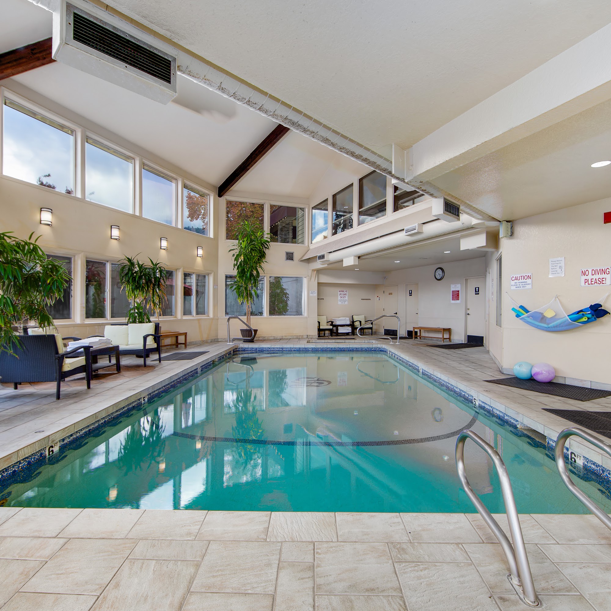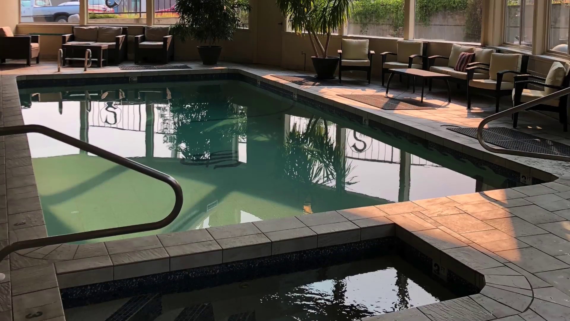 This hotel is very simple and sweet. The hot tub is small but adequate. The poop room was enjoyable. Breakfast was yogurt bar and toast which was perfect. Great coffee actually, normally I can't say that about hotel coffee. Front desk staff and breakfast lady were all so helpful and kind. I would return!