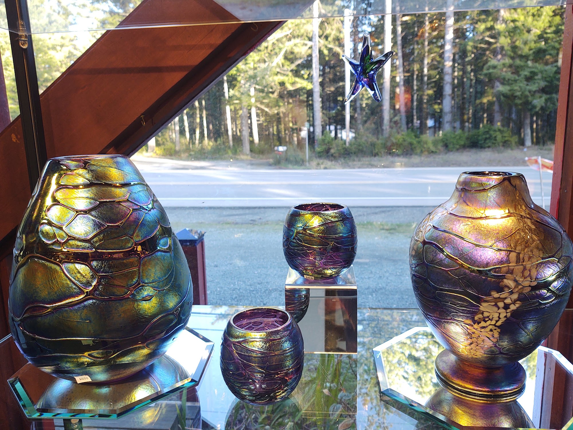 Excellent glassworks artist. Really beautiful work. Small store along highway.