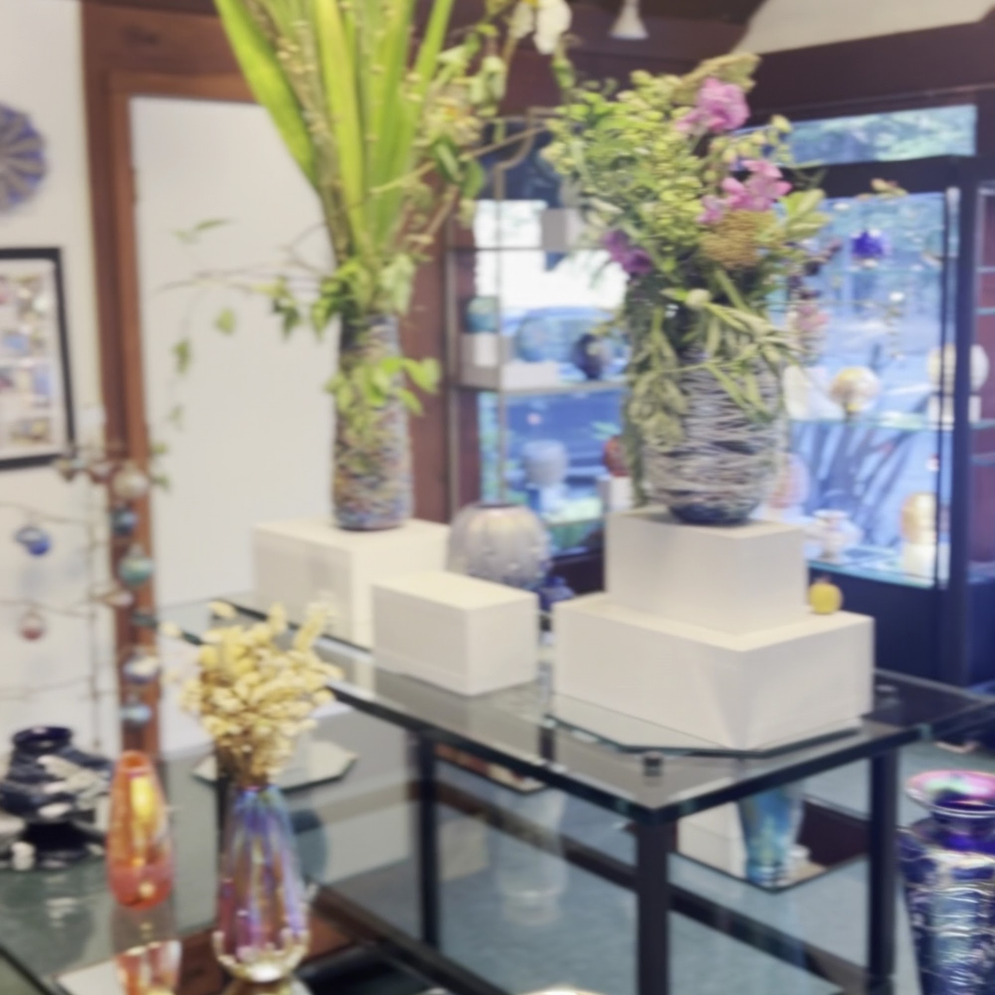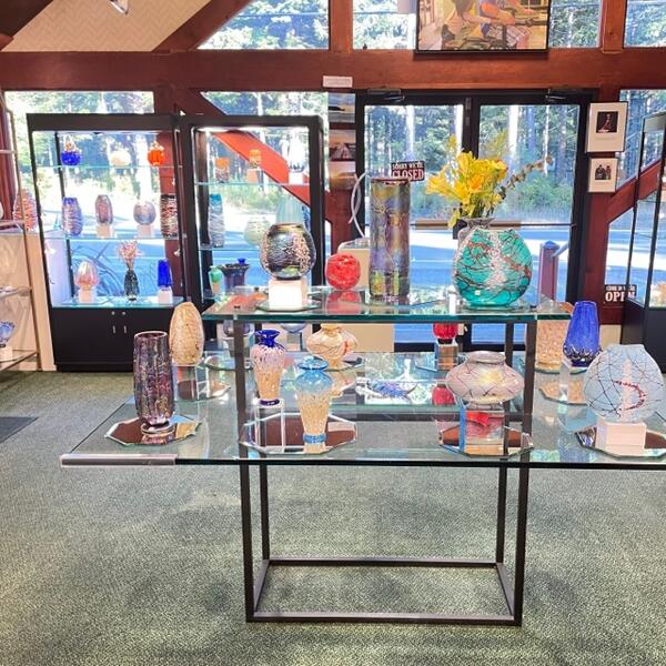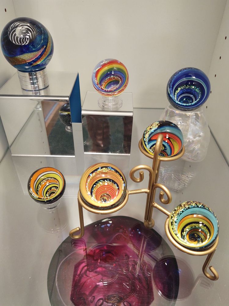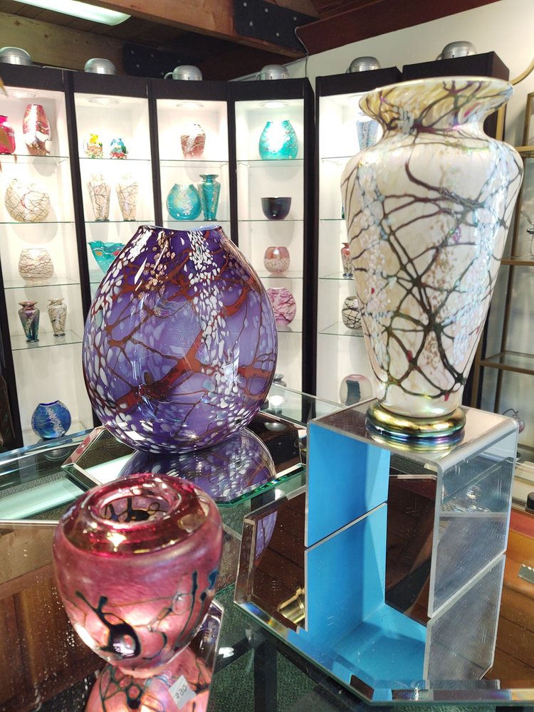 Vines Art Glass is a charming gallery located in a cute little cottage, known for its beautiful art glass pieces. Visitors have described the glass as gorgeous and unique, with many expressing their desire to take home everything they see. Over the years, customers have purchased various items, including vases and ornaments, often as gifts for friends and family. The gallery owner is praised for creating stunning pieces on-site and for being friendly and helpful, offering local dining tips, such as recommending delicious hot dogs from a nearby market. Many visitors have fond memories of discovering Vines Art Glass during road trips, where they found exceptional pieces that became cherished gifts or heirlooms. The gallery's vortex marbles, in particular, have captivated both children and adults, making them popular among families. Even those who did not make a purchase found the experience enjoyable, noting the couple running the business as extremely nice and helpful. Overall, Vines Art Glass is a delightful destination for anyone looking to admire or acquire beautiful glass art.
