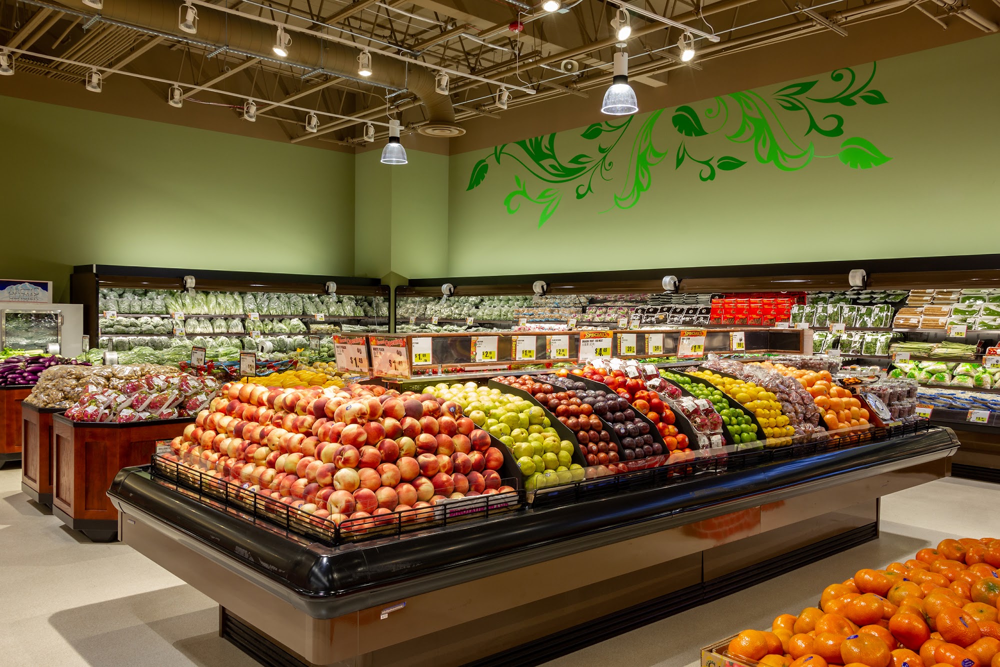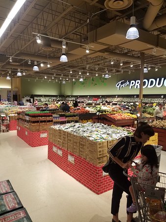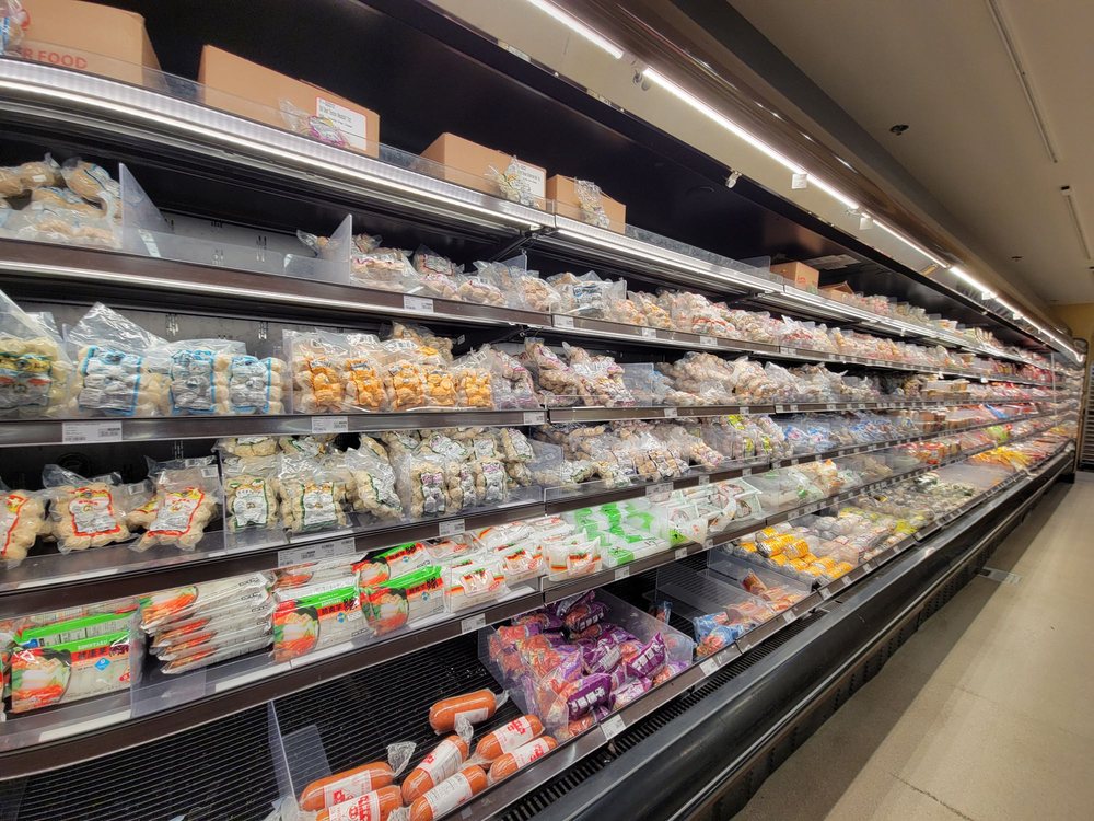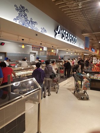 99 Ranch Market is a spacious and clean grocery store with a wide and amazing selection. The produce, meat, and seafood offer more choices and are very cheap, with many items on sale. Prices are fair and slightly cheaper compared to other stores. The shelves are well-stocked and the parking lot is clean. The staff is helpful and knowledgeable, providing a good shopping experience. The store also features a deli with items like roasted duck and breads. It is a different kind of grocery store where customers can find new and rare items, making for a wonderful visit.