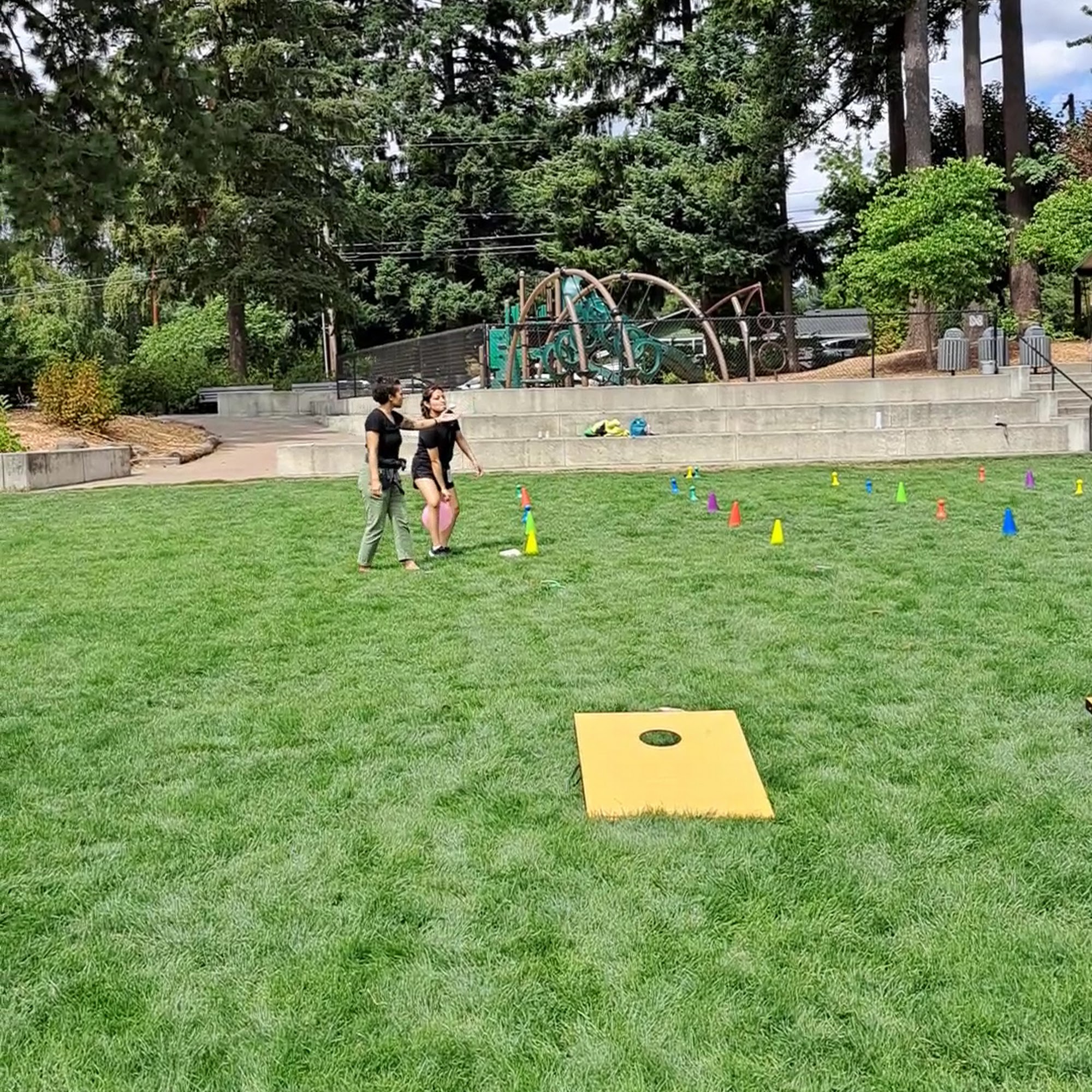 The playground had some fun features such as something to spin on and an arch to practice climbing. There is a nice path to walk around and plenty of benches to sit on, however the wasps were bad when we tried to picnic here (mid September).