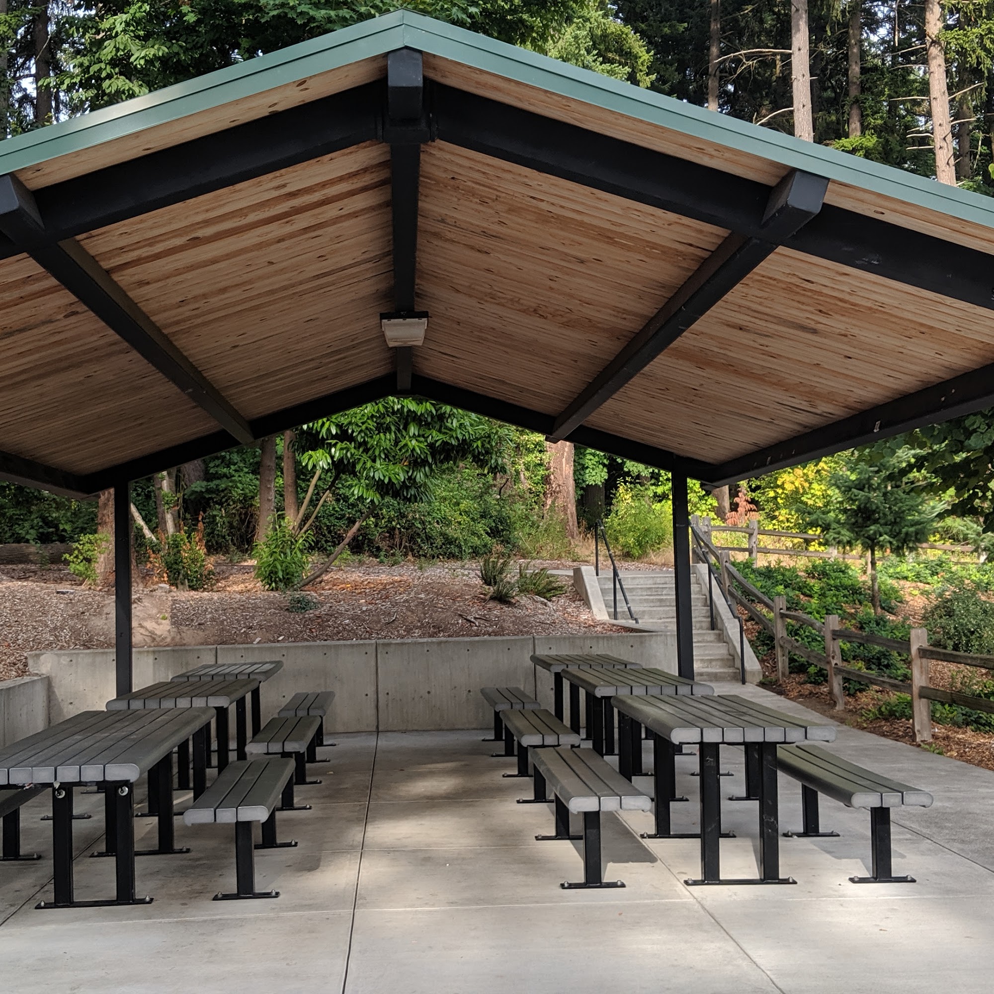 Nice neighborhood park with a picnic area, walking trail, basketball court and soccer field. Street parking and dog waste bags to round things out.