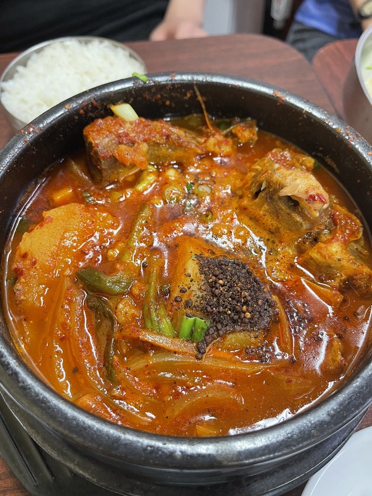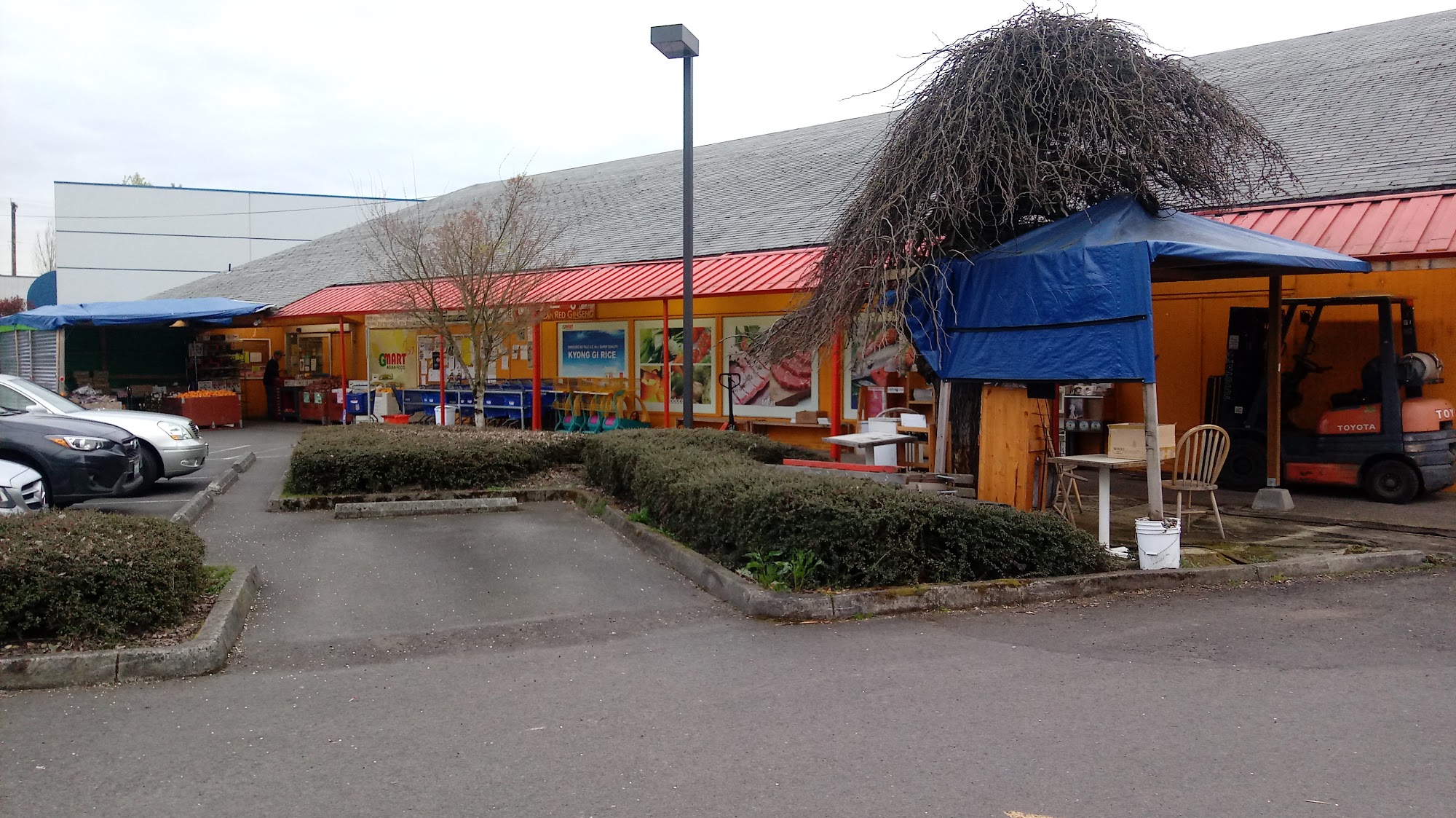 Restaurant upstairs inside The GMart Store. Very Tasty Dak Bulgogi with side veggies.