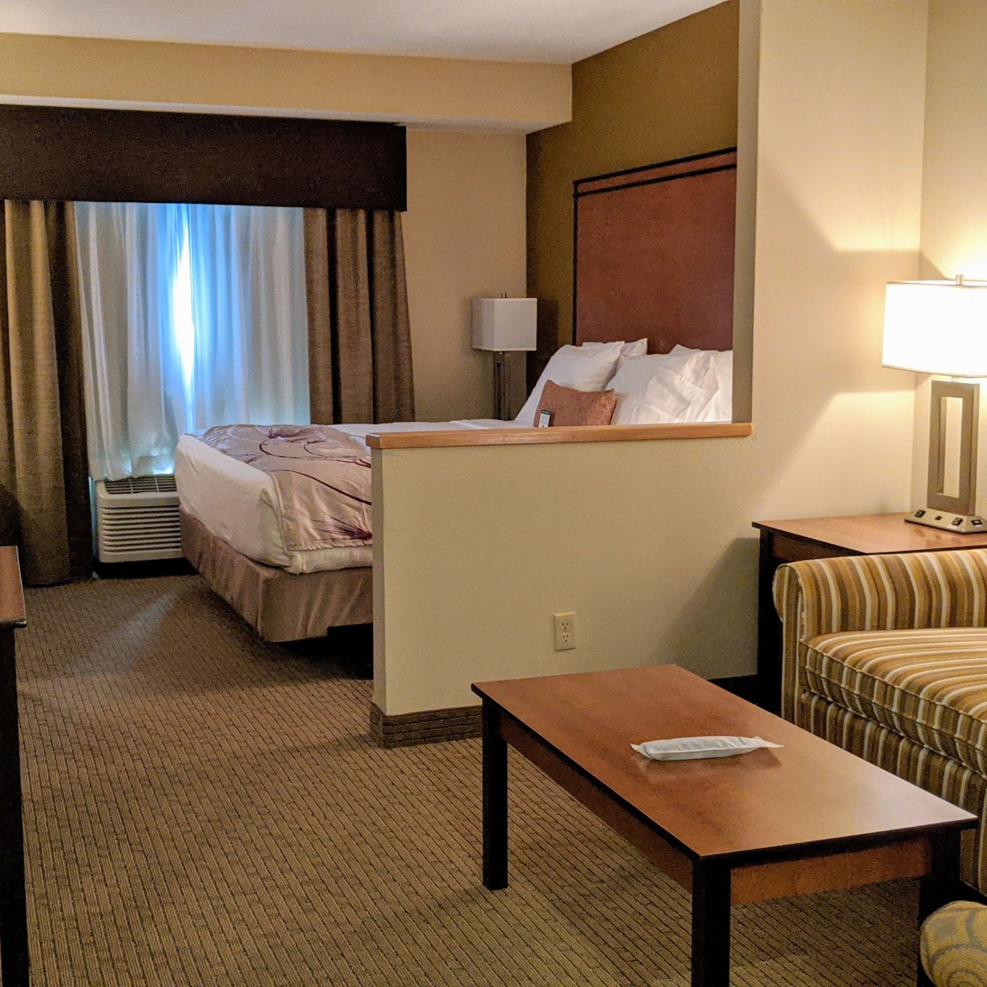 The Best Western Bend North is a well-reviewed hotel that offers a great experience for guests. The rooms are described as very clean, especially the sheets and towels, making for a comfortable stay. The staff is praised for being courteous, friendly, and accommodating, even with requests for late checkout. The hotel features an indoor pool and hot tub, which are well-liked, although the water in the pool is not described as crystal clear. The rooms come equipped with a microwave and fridge, with the fridge being noted as very cold. The heating system in the rooms is also effective, though the temperature control is not always precise. Guests appreciate the good selection of breakfast options, including biscuits and gravy, omelets, and make-your-own waffles, as well as the large and clean dining area. The lobby is described as nice, with a fireplace that is enjoyed upon entry. While the hotel is generally praised, some guests note that the walls are thin, leading to noise from the road, and that the water in the tub and sink can drain slowly. Overall, the Best Western Bend North is considered a clean, comfortable, and affordable option for travelers to the area.