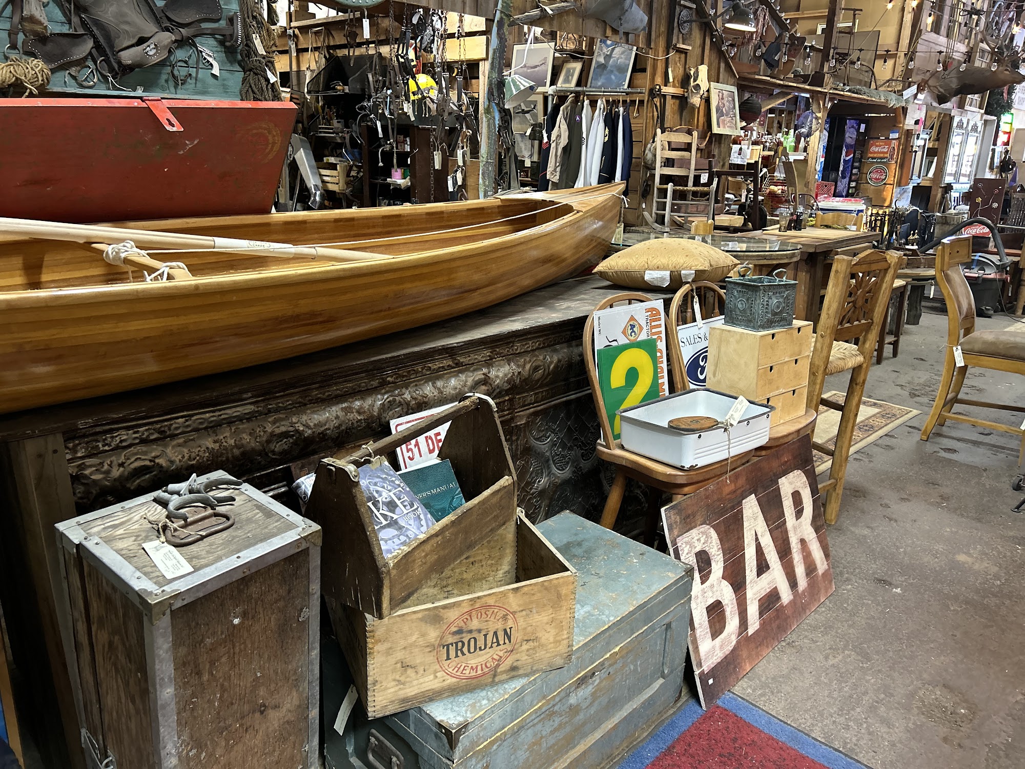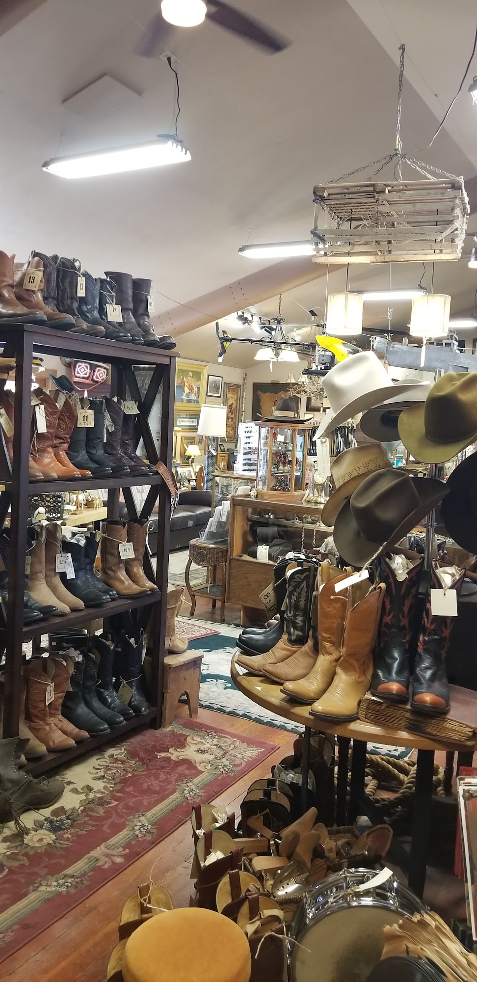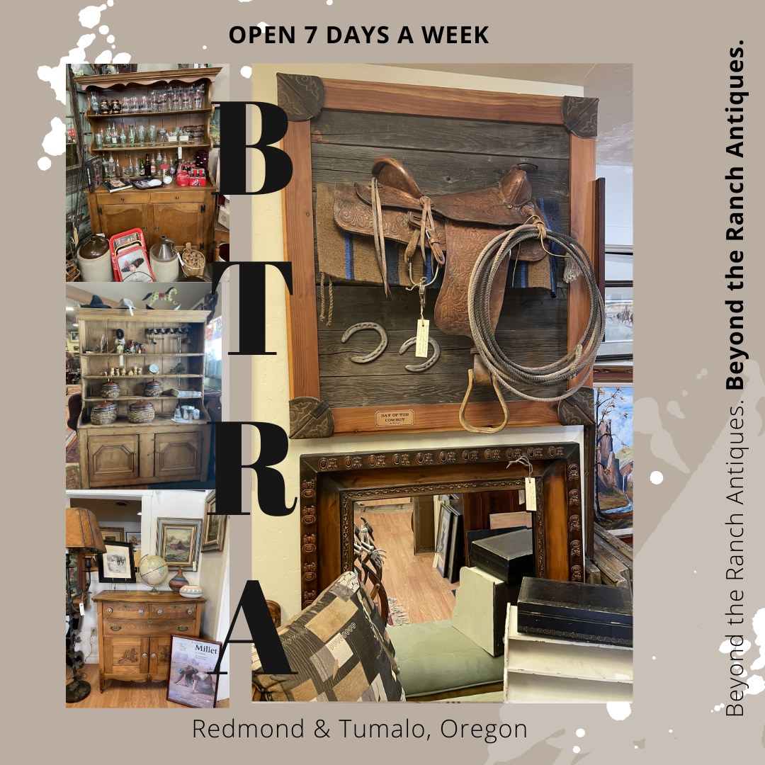 Step back in time. Come to either of our locations, better yet visit both, to experience the western lifestyle of the past. Our tremendous western and Native American art will be a great addition to any home or collection. We have an amazing array of high quality antique furniture, collectibles, architectural salvage, light fixtures, vintage clothing, western tack, cast iron, vintage tools, toys, turquoise jewelry, sterling silver jewelry and the list goes on. Come see why we’ve been selected in the top eight best antique stores in Oregon. If you have the interest, we the variety of items to meet many desires! Come see us soon and meet Drake, the number 1 store dog in Central Oregon! Happy Trails!