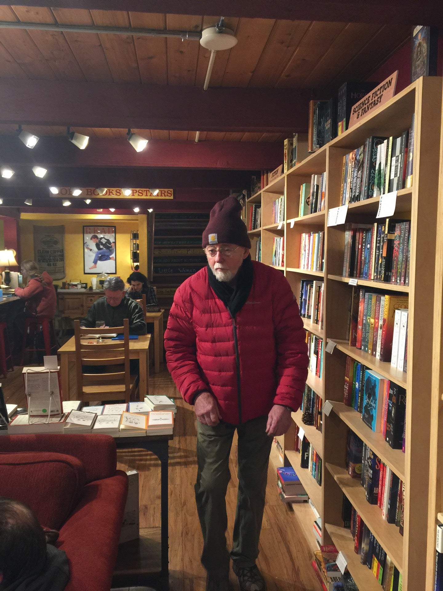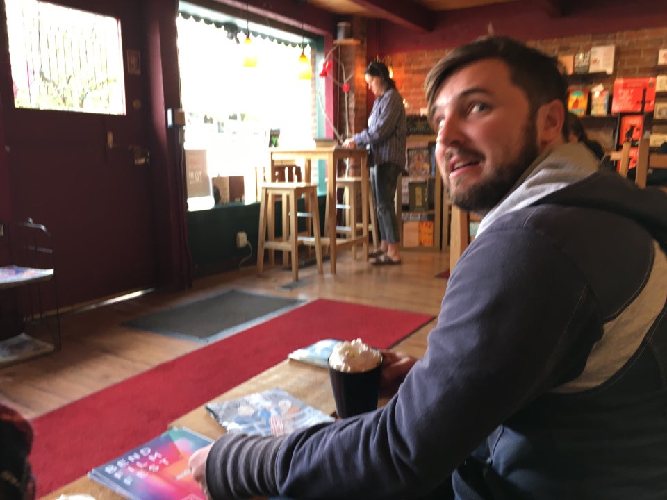 The Good- Excellent shop, highly recommend. Smells of good books and fresh coffee. Coffee cake and Mochas also great. Will be back to hang out..