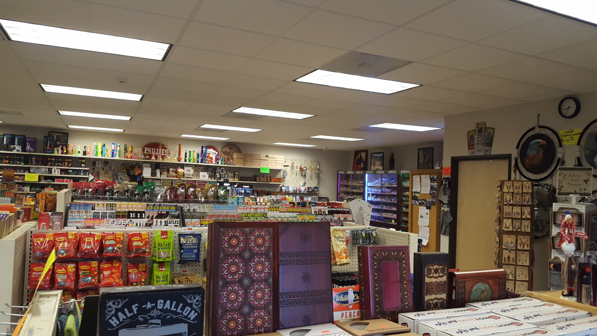 It's a smoke shop. If you're looking for something smoke related, they probably have it. Smokes are cheaper than the gas station. Plus they have some fun little non-smoking related gifty-type things. What more are you looking for in a smoke shop?