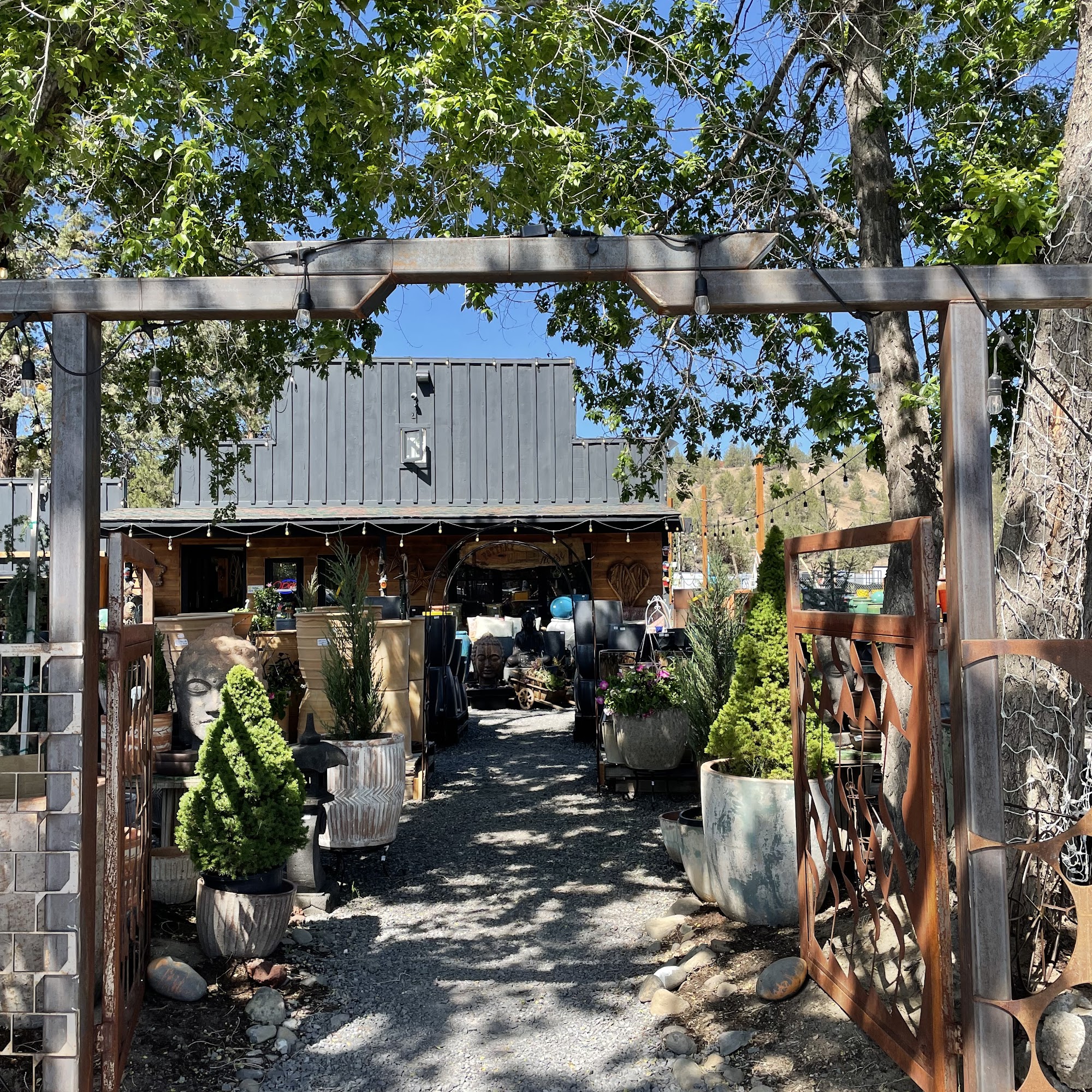 Pottery House is the largest seller of indoor and outdoor pottery, statuary, fountains, garden decor, and gifts in central Oregon, located within a historic old west style building. They carry a very deep selection of super quality, frost proof pottery and fountains that can withstand winters, alongside wonderful works of art from local artisans. The indoor area is full of goodies, from indoor cache pots to jewelry and home decor items, many one-of-a-kind. The staff and owner are very friendly, full of ideas and inspiration, and provide exceptional customer service. Customers are treated with patience and kindness, receiving equal attention regardless of their budget. The selection is perfectly curated with great pricing and very reasonable price points given the high quality and craftsmanship. It is an awesome place with a great experience, also featuring an onsite coffee shop and nice food court around, making it a lovely spot and a nice stop on the way.