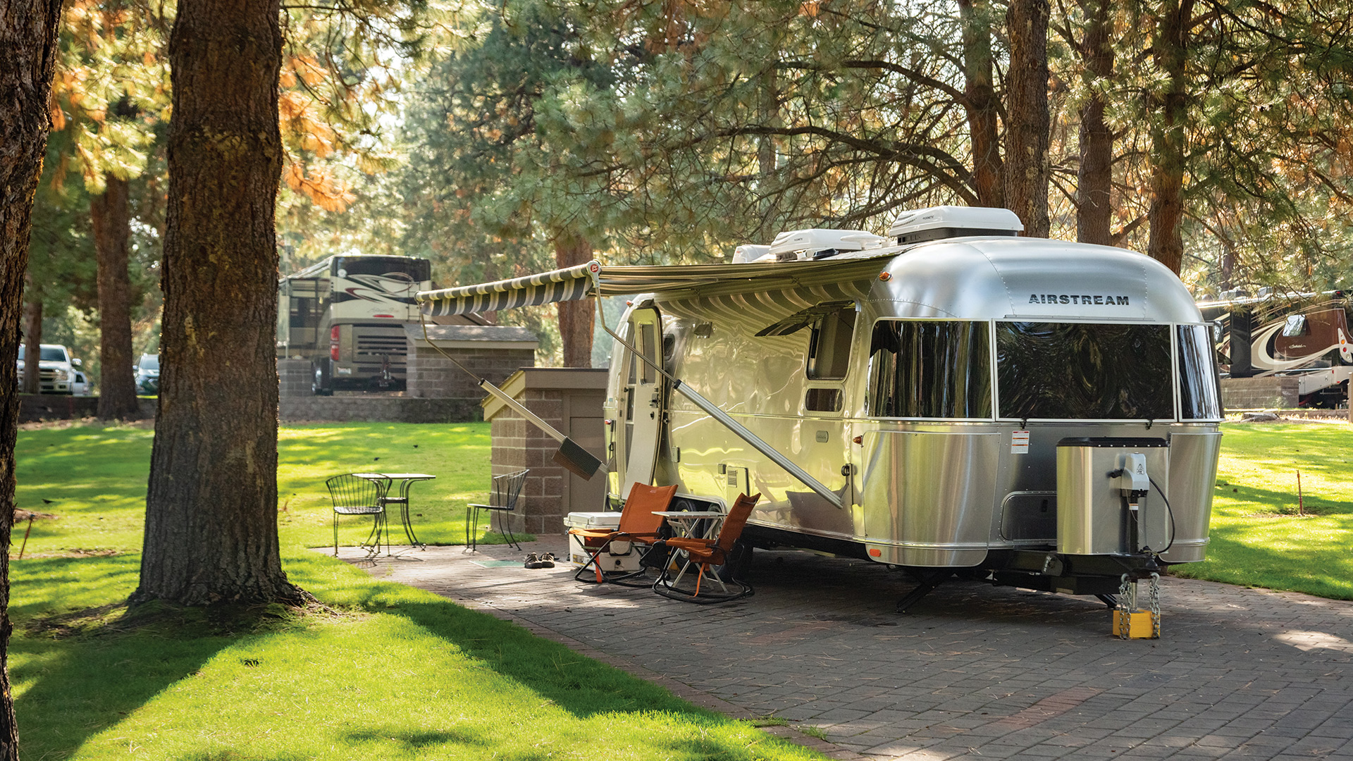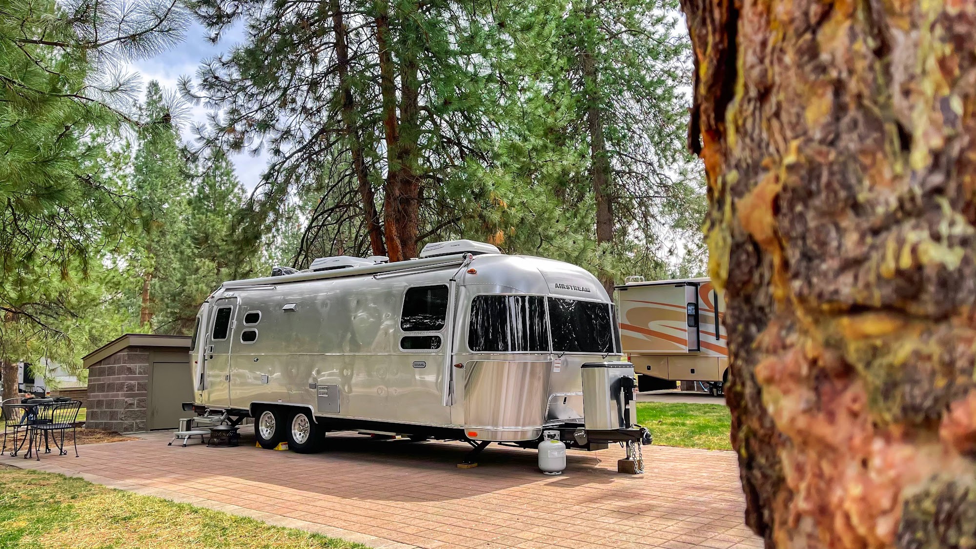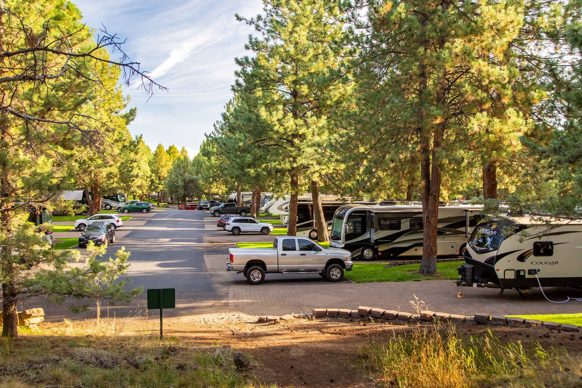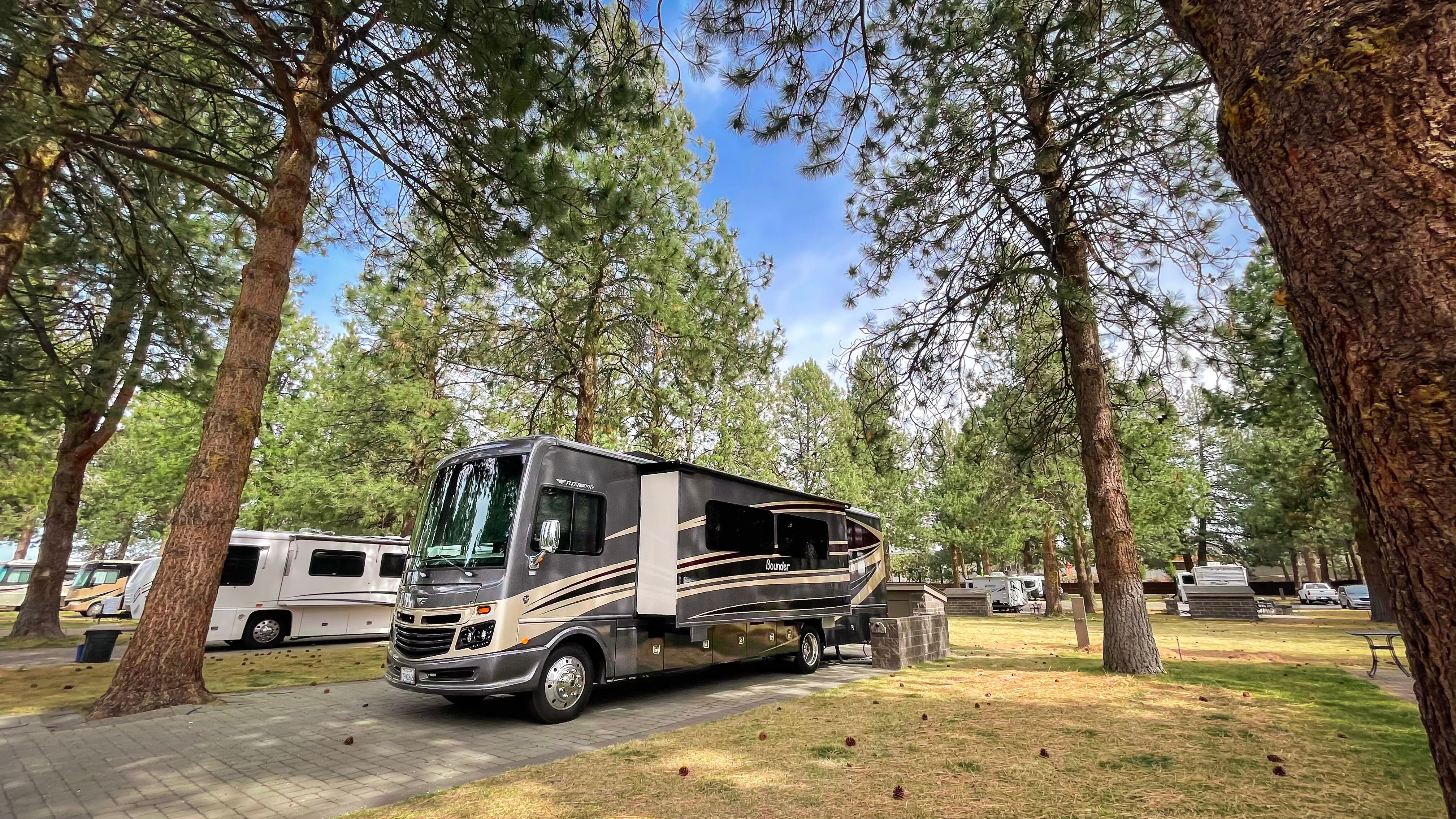 Very large sites with large pine trees offering plenty of shade. Great spot also if you have a pet- large park where the dogs can run around and also grass next to each RV site. Love the daily trash service picked up at curbside. Overall well managed , nice amenities and quiet.