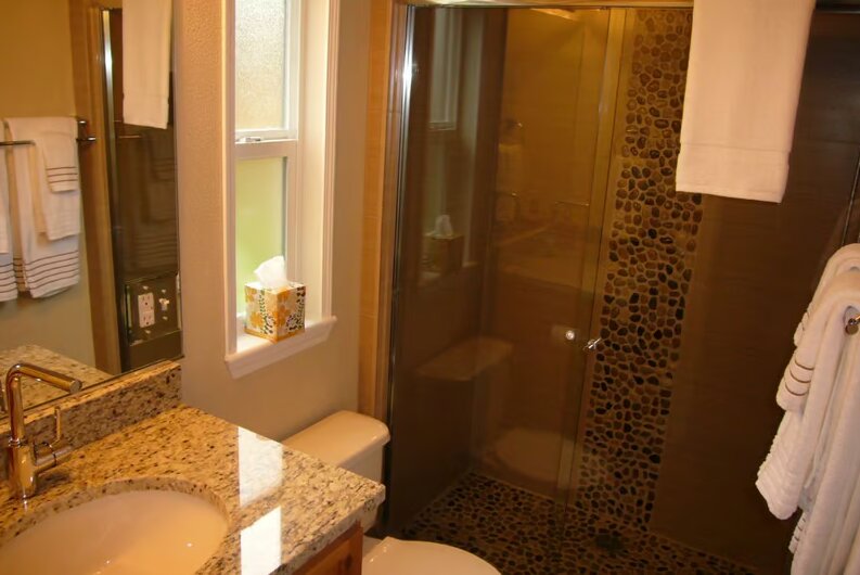 Sun Outdoors Bend is a highly recommended RV resort located in the scenic high desert of Bend, Oregon, just east of the Cascade Mountains. The resort offers very large, spacious RV sites with full hook-ups, including storage sheds and paved parking for tow vehicles. Many sites are shaded by large pine trees, providing a relaxing environment. The grounds are immaculate, with well-maintained facilities and quiet surroundings that keep noise to a minimum. Guests appreciate the convenience of daily trash and propane services, as well as amenities like a fitness center, hot tub, steam rooms, and a community kitchen perfect for gatherings and events. The resort is praised for its friendly and helpful staff, making check-in and stay comfortable. It features a large, green, and shady outdoor space with a walking area for dogs and nearby parks, although the dog park at the resort is small and dusty, prompting suggestions for improvements. Women’s shower and bathroom facilities are very clean, with individual enclosed stalls, while men's facilities are still being updated. Located close to numerous Bend attractions, the resort provides easy access to outdoor activities such as hiking, mountain biking, and floating the Deschutes River. Visitors often find the location ideal for both relaxation and adventure. Overall, Sun Outdoors Bend offers a high-end experience with ample amenities, spacious sites, and a peaceful environment, making it a favorite among travelers seeking comfort and outdoor recreation.