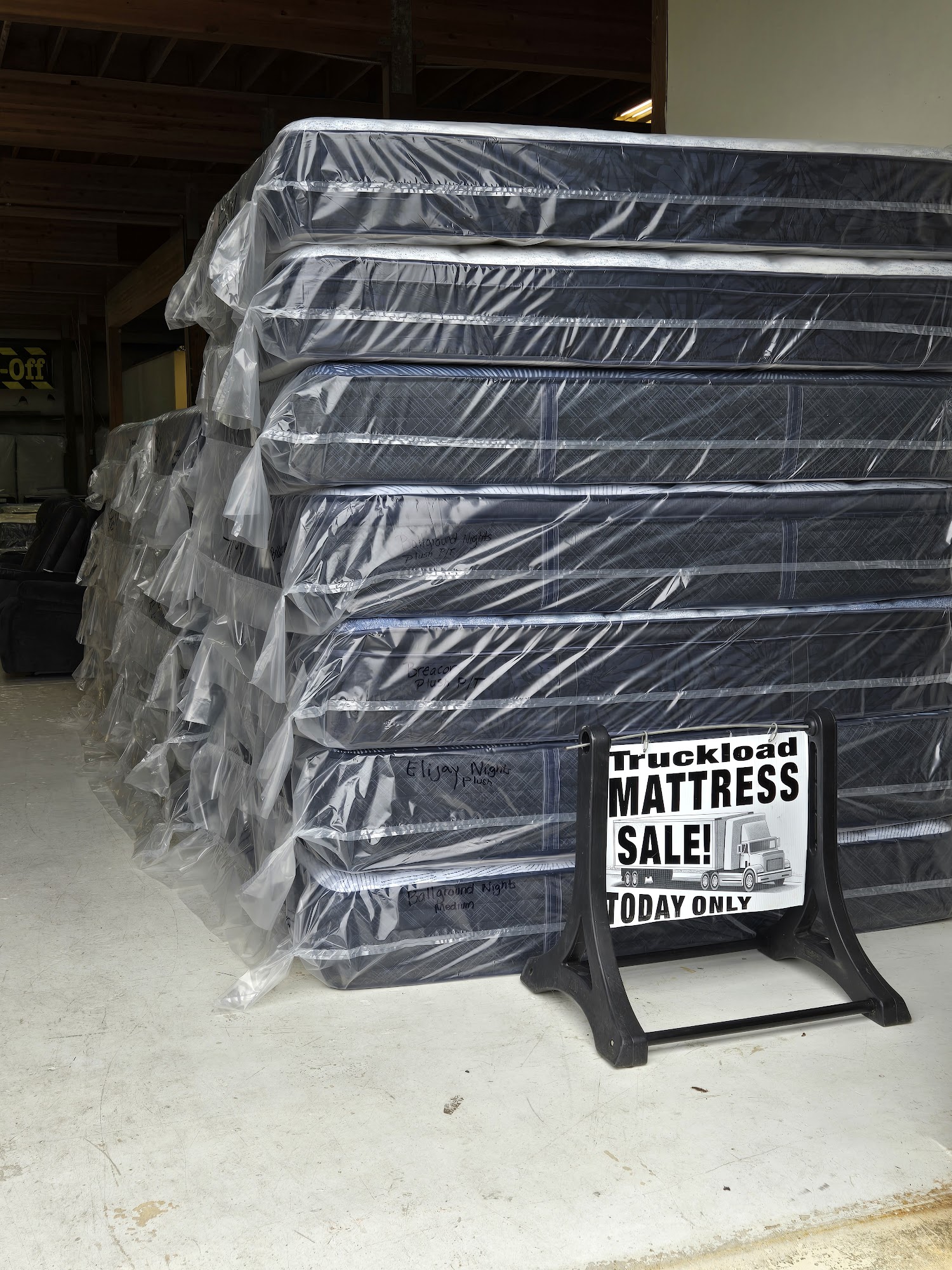 We have a small mattress and furniture clearance center, here in Coos Bay. We are not a store, we have a warehouse. Much lower over head, we don't spend alot on advertising and we buy overstock, closeouts and whatever we can find a good value on. Then we pass the savings on to you. We are just a small family buisness. We just setup times with people and meet them at the clearance center.