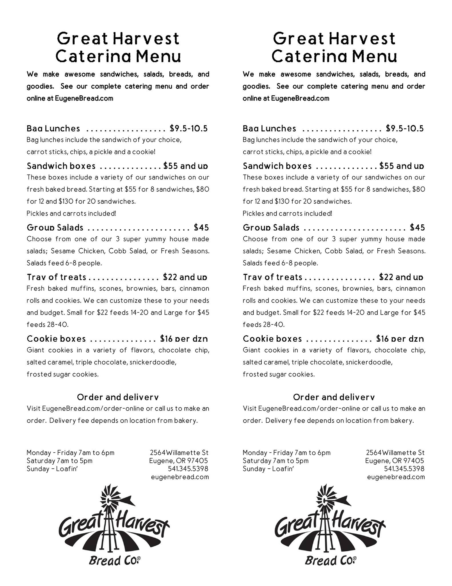 Great Harvest moved across Willamette St and into the old dry cleaners. I met my sister there. We had two slabs of bread and butter and a couple cappucinos. The staff are great! We will be back! Bread loaves are 7.50.which seems reasonable for freshly baked. And they have challah too
