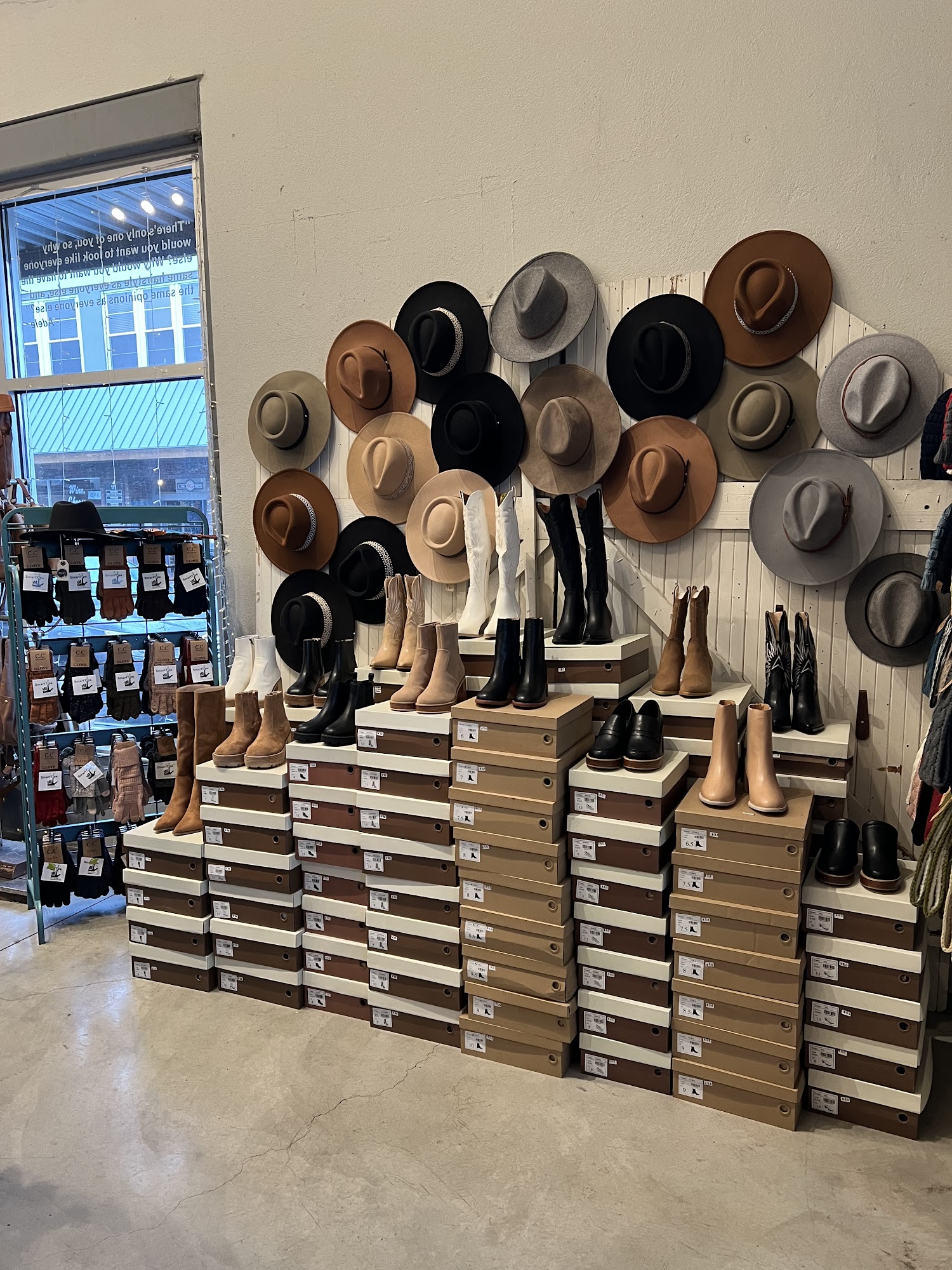 Cute store, welcoming staff. A boutique style store with floral dresses in the spring and fluffy sweaters and plaid jackets in the winter. Nice rim hats and beanies, leather purses, funny decor gifts. I’ve been in the store multiple times, nice variety. I will be back!