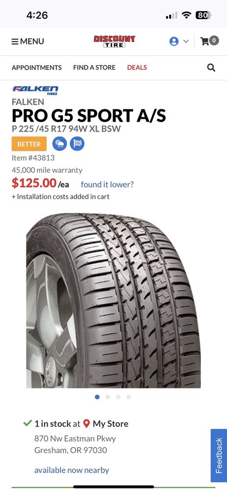 Discount Tire is the go-to tire and wheel shop for customers in Gresham, OR, offering a wide selection of top-quality products and exceptional service. With a focus on customer satisfaction, the store's knowledgeable staff can help customers find the perfect set of tires or rims for their vehicle, whether it's a car, SUV, or truck. The store's services include tire installation, rotation, balancing, flat repair, and free air pressure checks, ensuring that customers can get back on the road quickly and safely. Customers have praised the store's fast, efficient service, with one reviewer noting that they were in and out in just 40 minutes. In addition to the impressive service, customers have also highlighted the store's competitive prices and the availability of discounts that aren't advertised. One reviewer even mentioned that the staff helped them find a better tire option that provided more warranty coverage than what they had originally chosen. Overall, Discount Tire of Gresham, OR is a highly recommended tire and wheel shop, known for its quality products, professional staff, and commitment to customer satisfaction.