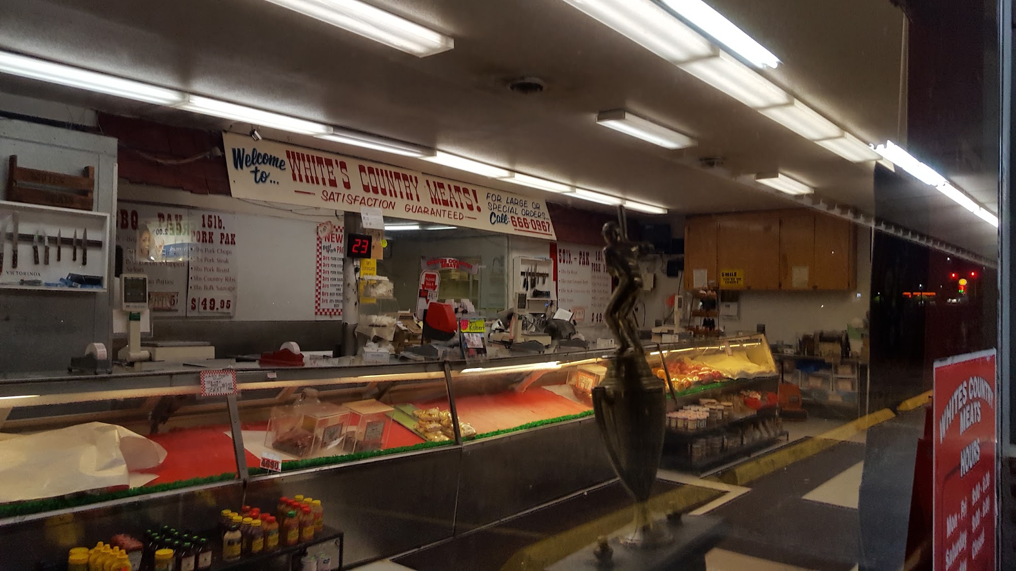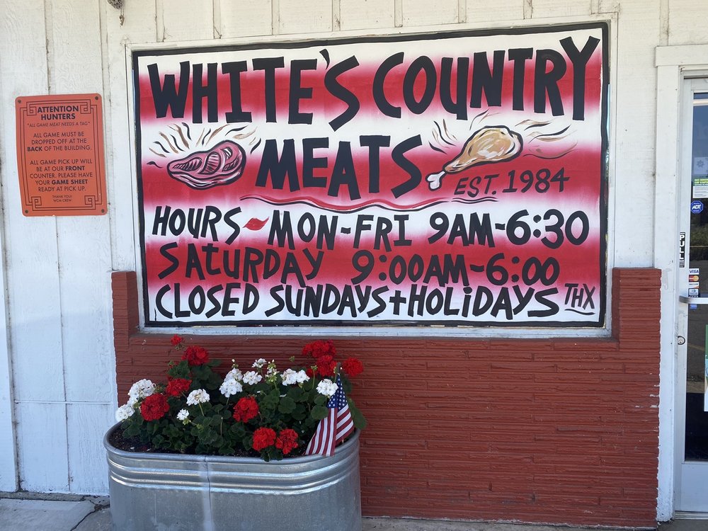 White's Country Meats is a butcher shop known for its amazing and awesome selection of fresh meats, including steaks, ribs, sausage, bacon, and tritips. Customers report the quality is never bad, with meats described as delicious and perfectly cut. The business is often busy, with a number system used to manage service. The staff are consistently noted as friendly, kind, helpful, and super nice despite being busy. While most experiences are positive, there have been rare service mistakes, such as order misunderstandings or incorrect wrapping. Occasionally, the jerky is not the best when it is completely dried out, so it is best when dark and moist. There was also an instance where opening hours on the website were not updated. Overall, customers are very satisfied, purchasing large orders to fill their freezers and lessen grocery costs.