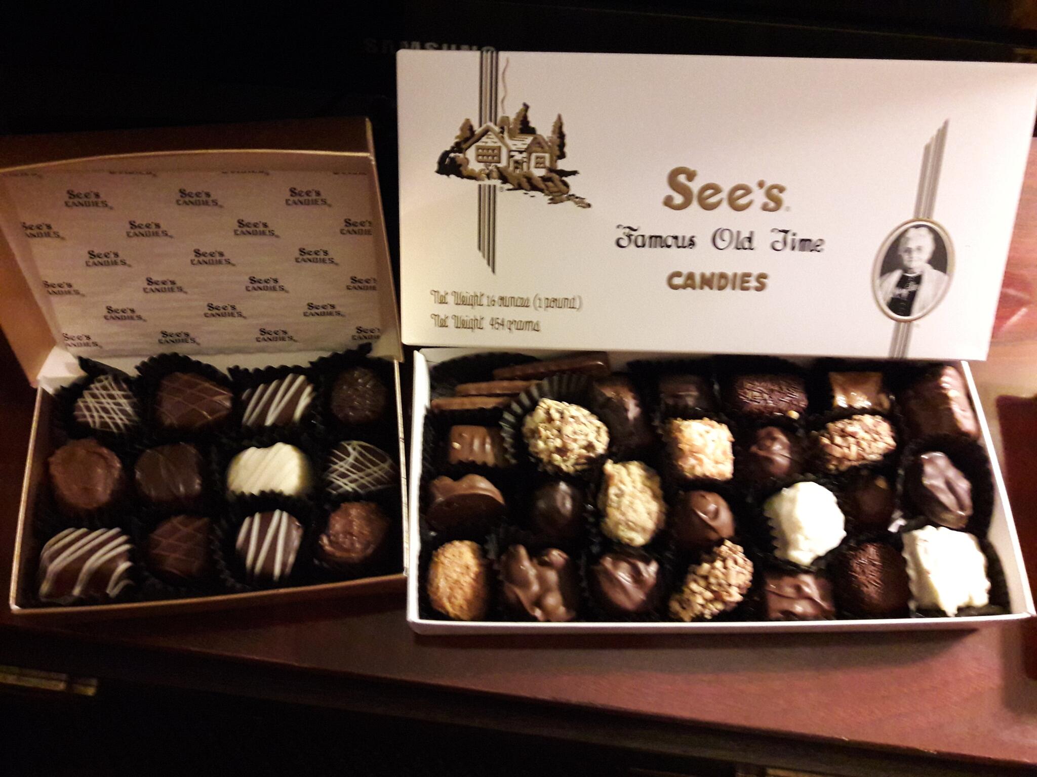 Sees is the best... EVER!!! Absolutely LOVE them, AND you get a delicious FREE CHOCOLATE as soon as you walk through the door! I will eat Sees until I die!!! Worth every calorie and rise in blood sugar!