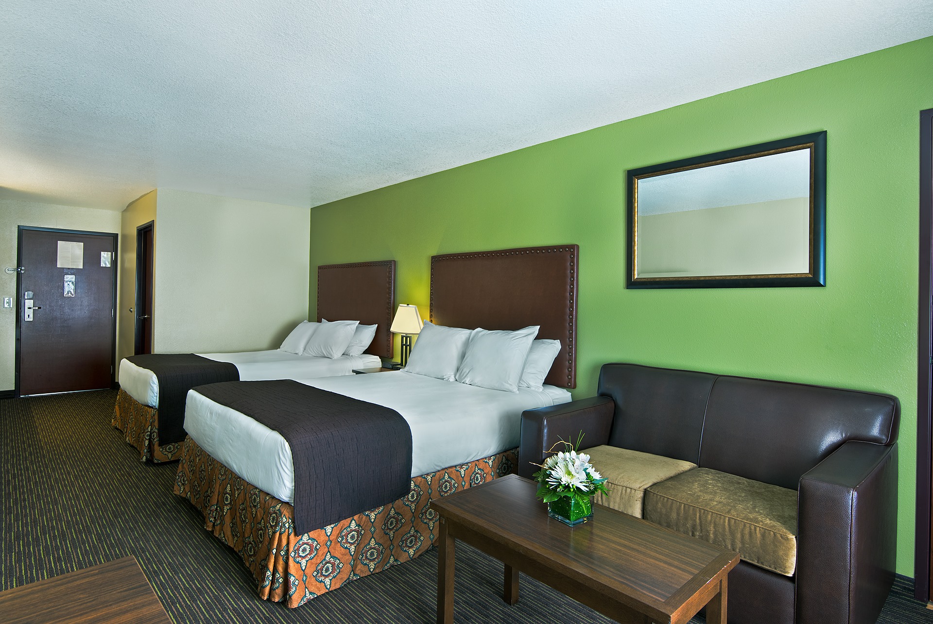 Room Amenities: Daily housekeeping, Shower/tub combination, Private bathroom, Hair dryer, Premium bedding, Air conditioning, Refrigerator, Microwave, Flat-panel TV, Iron/ironing board, Cable TV service, Free local calls, Desk, Separate sitting area, Coffee/tea maker, Premium TV channels