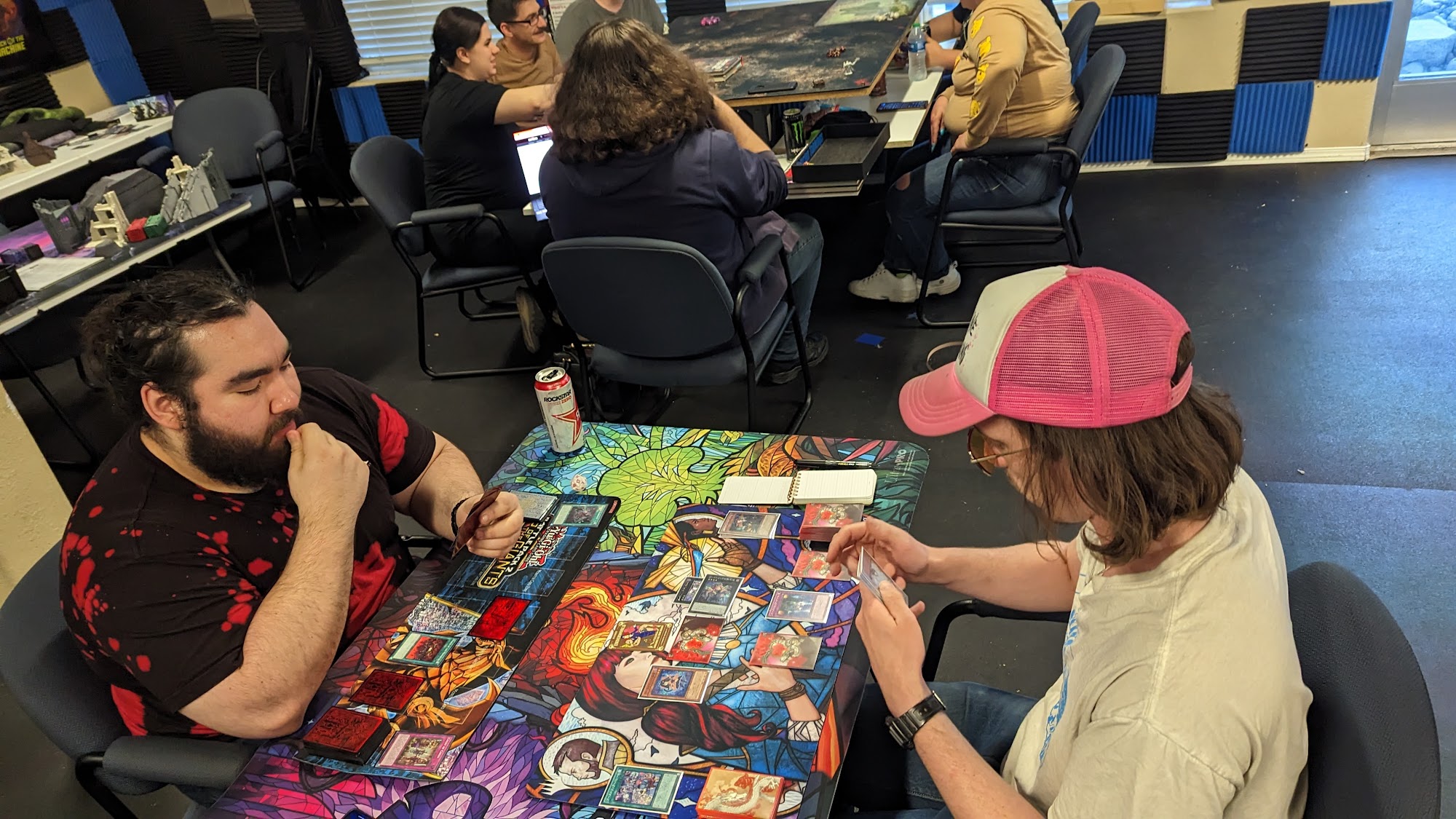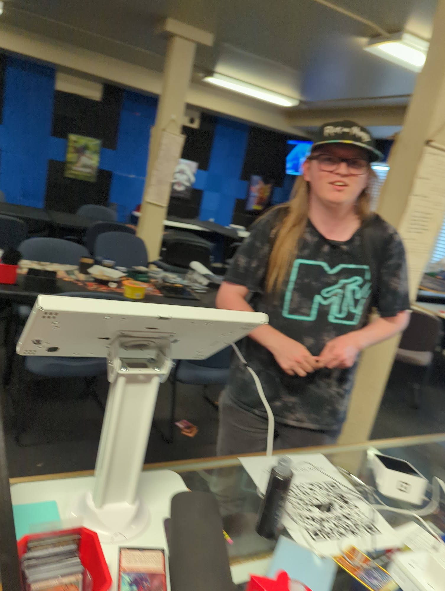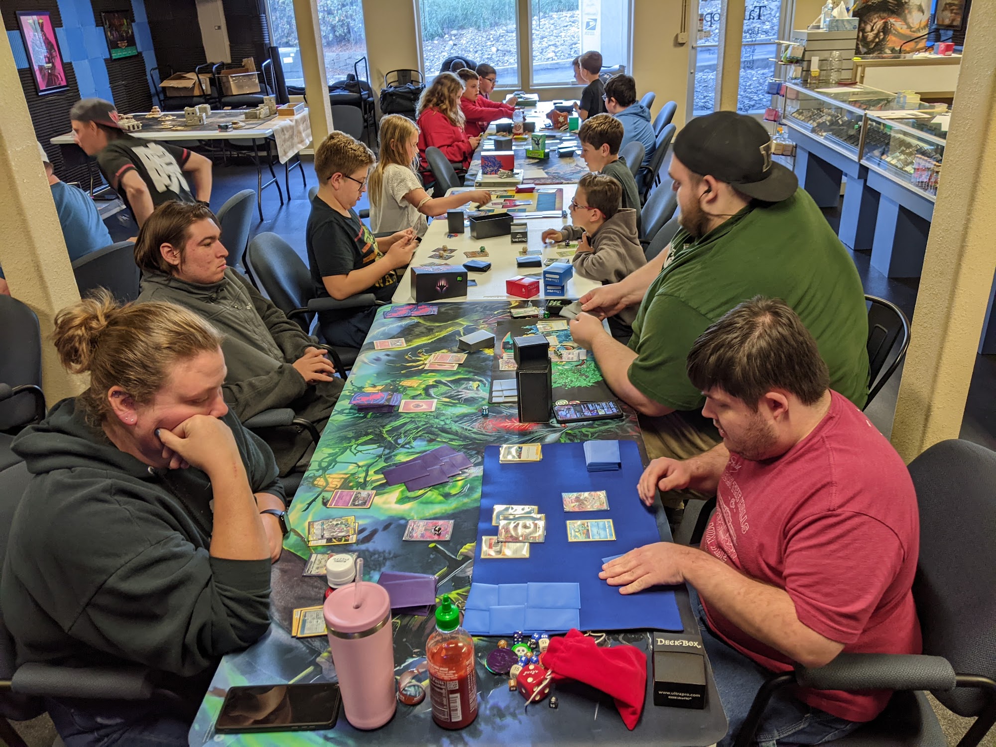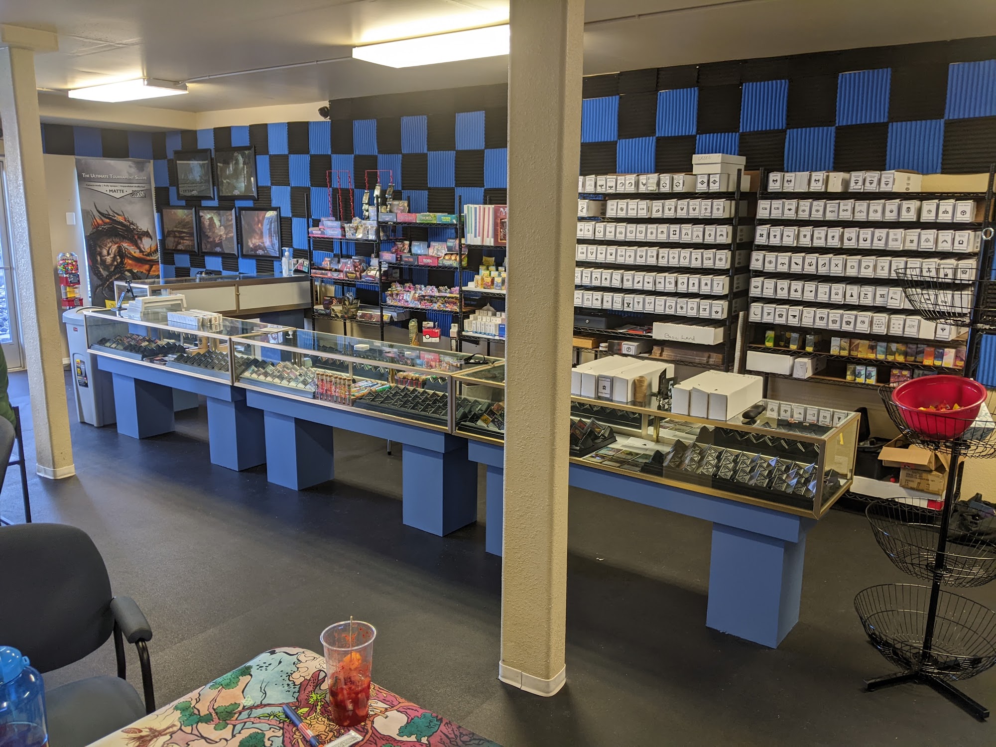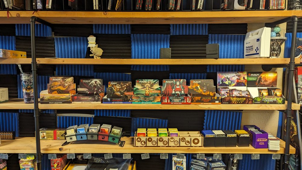 Nice atmosphere, snacks and drinks made available for affordable prices, and plenty of magic the gathering and dnd stuff to buy, as well as warhammer stuff, and a room set up for dnd campaigns, its pretty cool