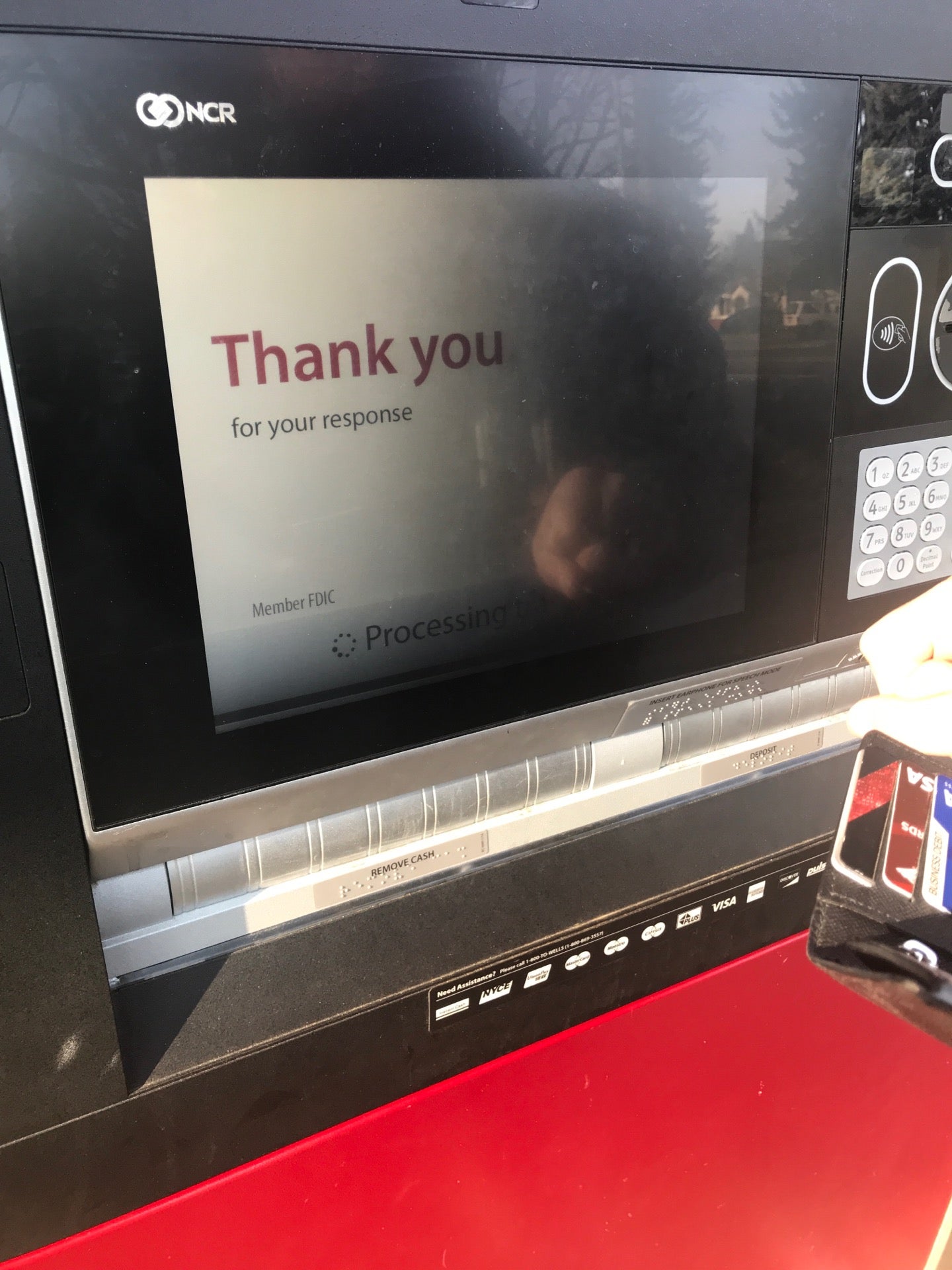 Been to your drive up ATM twice now and know one has wiped it down it looks like someone spit on the thing.