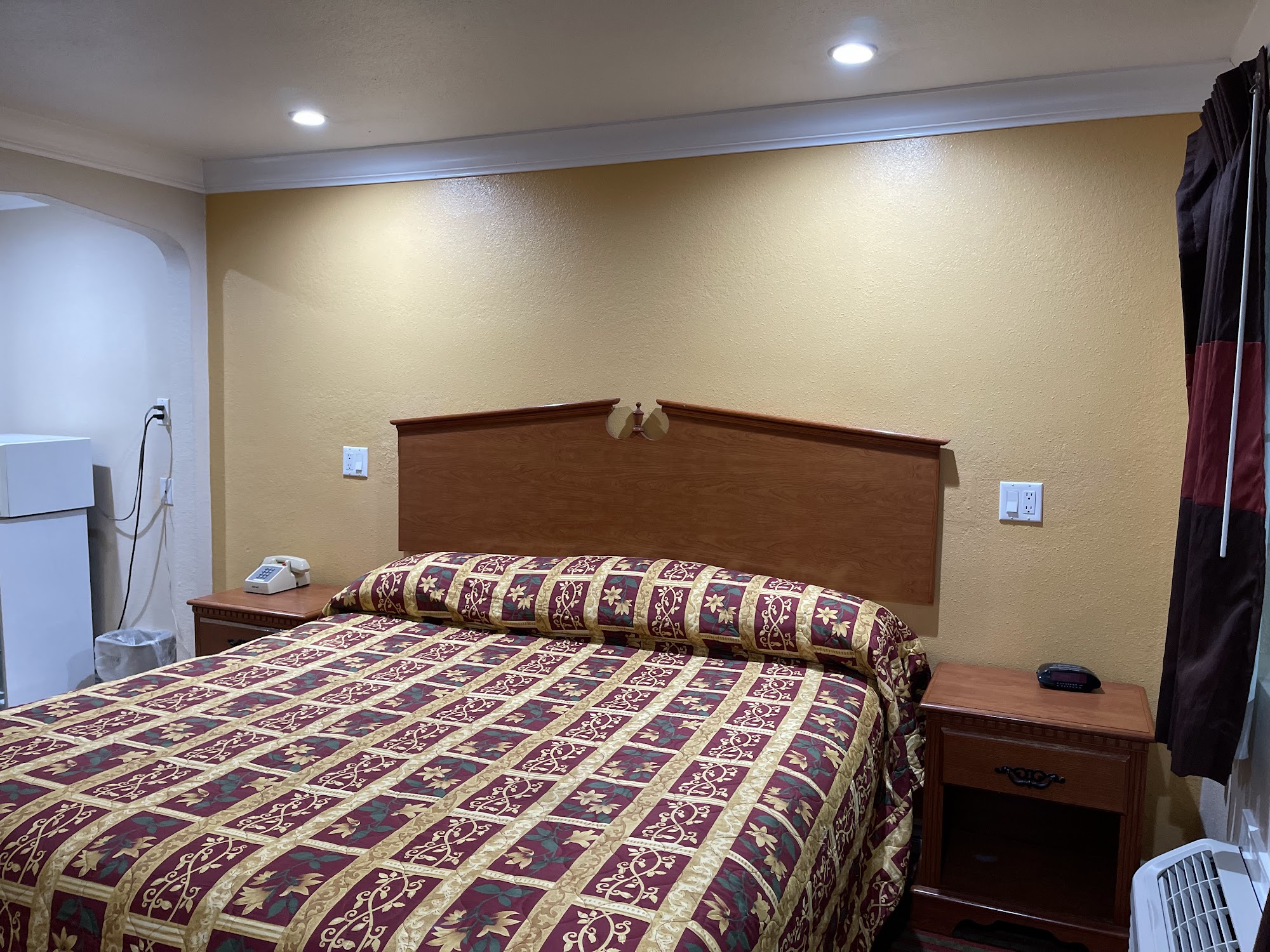 The room was clean and updated. It has a mini fridge and microwave which was really nice. Management was polite and friendly. Overall had a really good experience. I would definitely stay there again.