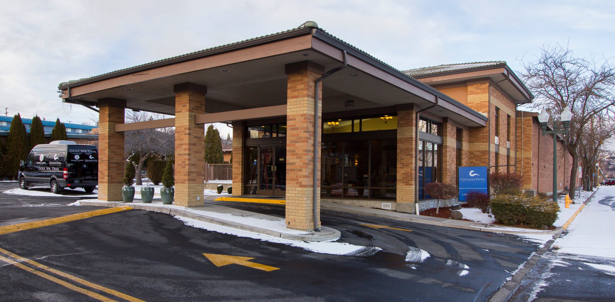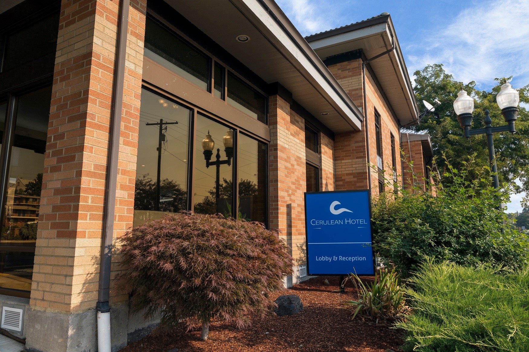 The Cerulean Hotel is an older, recently remodeled two-story hotel with outdoor entrances. While showing some signs of age at first glance, the buildings are in good condition and the rooms are very clean, spacious, and absolutely wonderful. Rooms feature updated amenities including a kitchen with a stove top, microwave, a medium-size refrigerator, and a coffee maker, plus a desk and a table with chairs. Beds are comfortable. The hotel has a swimming pool by the lobby that is heated, though its hours can be limited. The location is liked, within walking distance to the nearby Waffle Hut restaurant and bar for food and entertainment. The staff is consistently noted as very friendly, great, accommodating, polite, caring, well-spoken, professional, and exceptionally informative. They are helpful with specific needs. A point of criticism is the industrial cleaner used in rooms, which has a very strong smell; a softer scent is preferred. The electronic door locks are noted but not considered worse than standard key cards. Overall, it is considered a jewel, a great and reasonable hotel, above average, and not bad for a two-star hotel, with many guests stating they would definitely stay again.