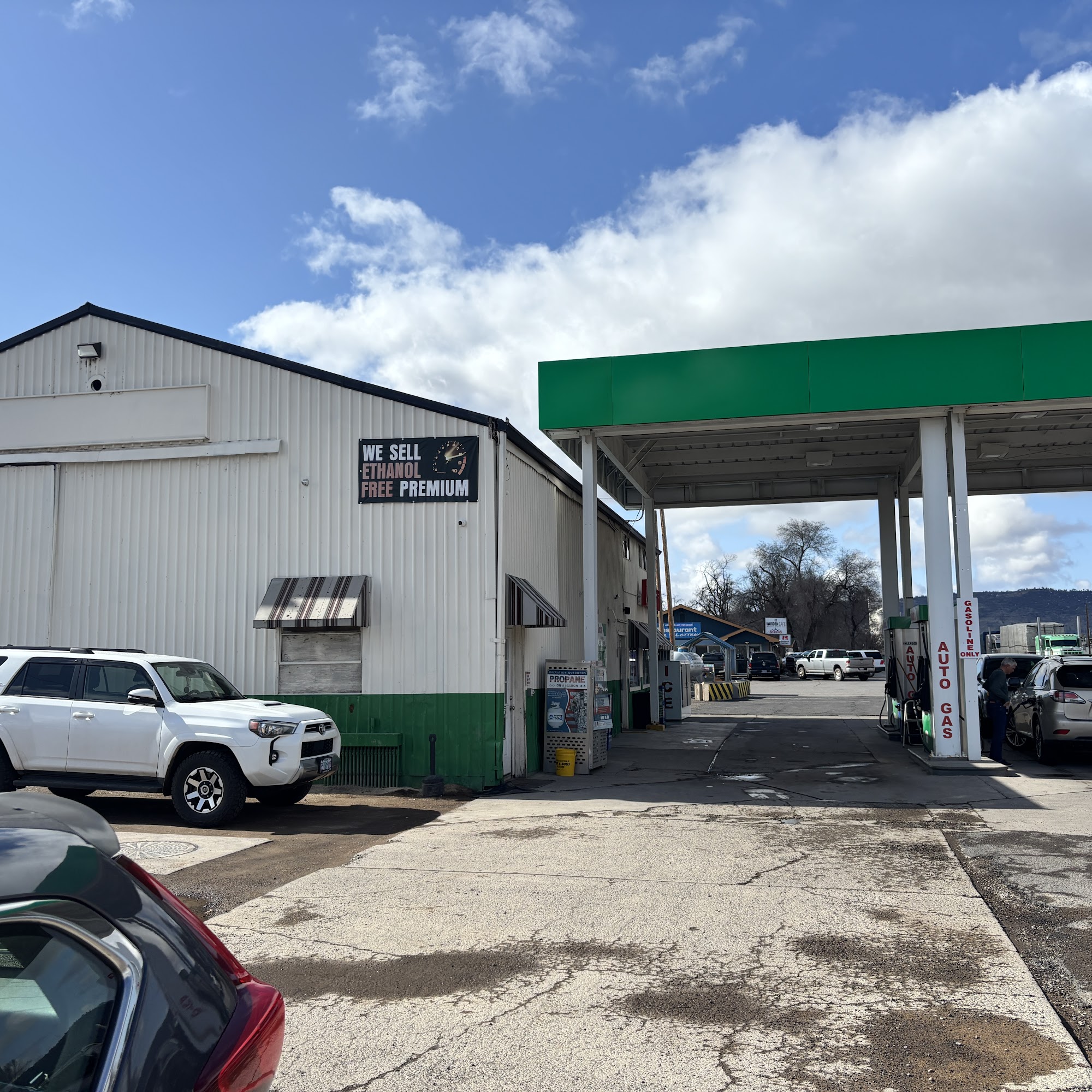 Great gas station -- cheap gas, close to highway, clean bathrooms, well stocked snacks, and a dog park.