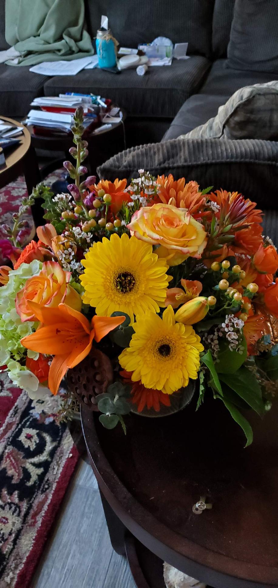 The flowers were gorgeous and the delivery was top notch with taking the time to make sure the flowers were delivered
