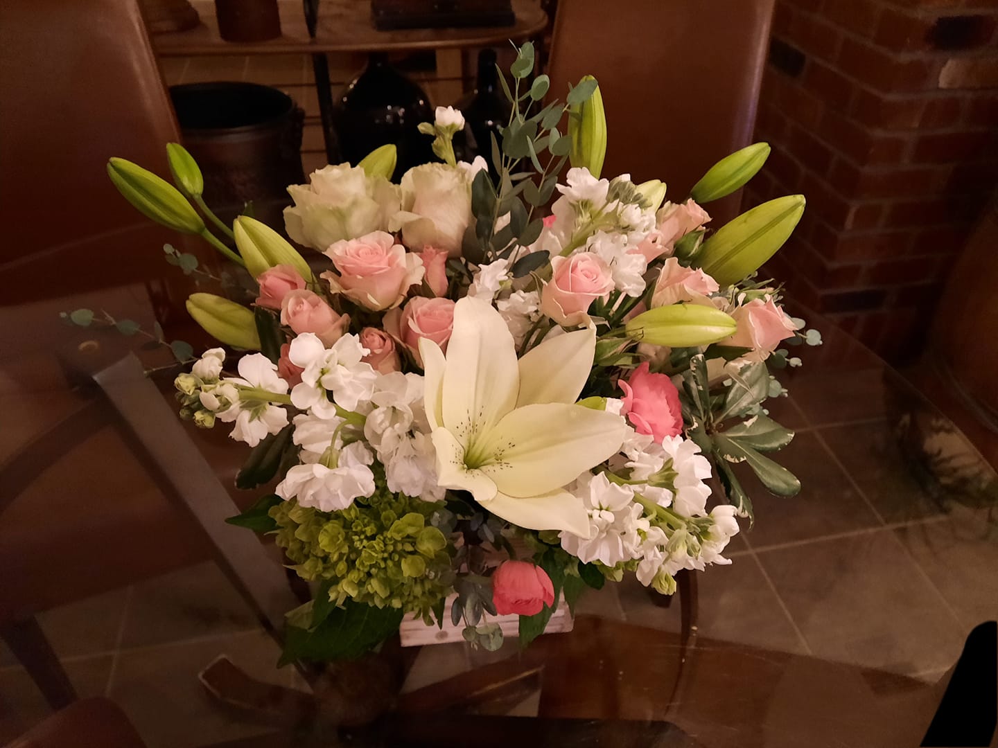 Beautiful fresh flowers arranged professionally and delivered on time. I'm very happy with their service.