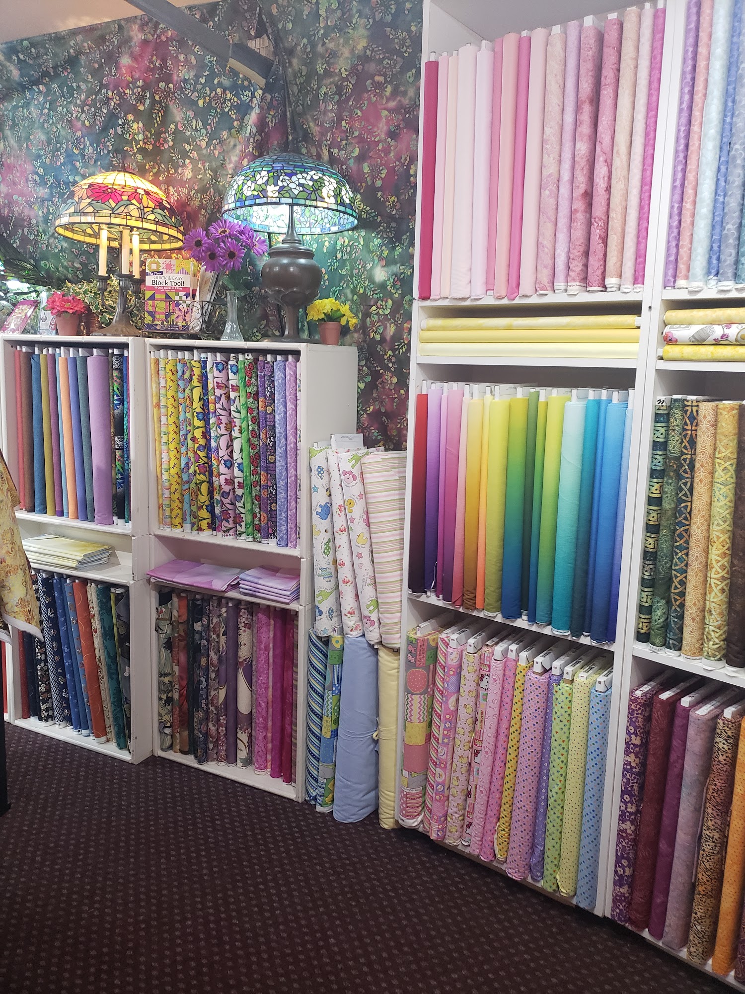 The owner is a doll and very talented. The store is well stocked and the decor makes you happy with all the color. Great place to shop and Kim also has quilting machines.