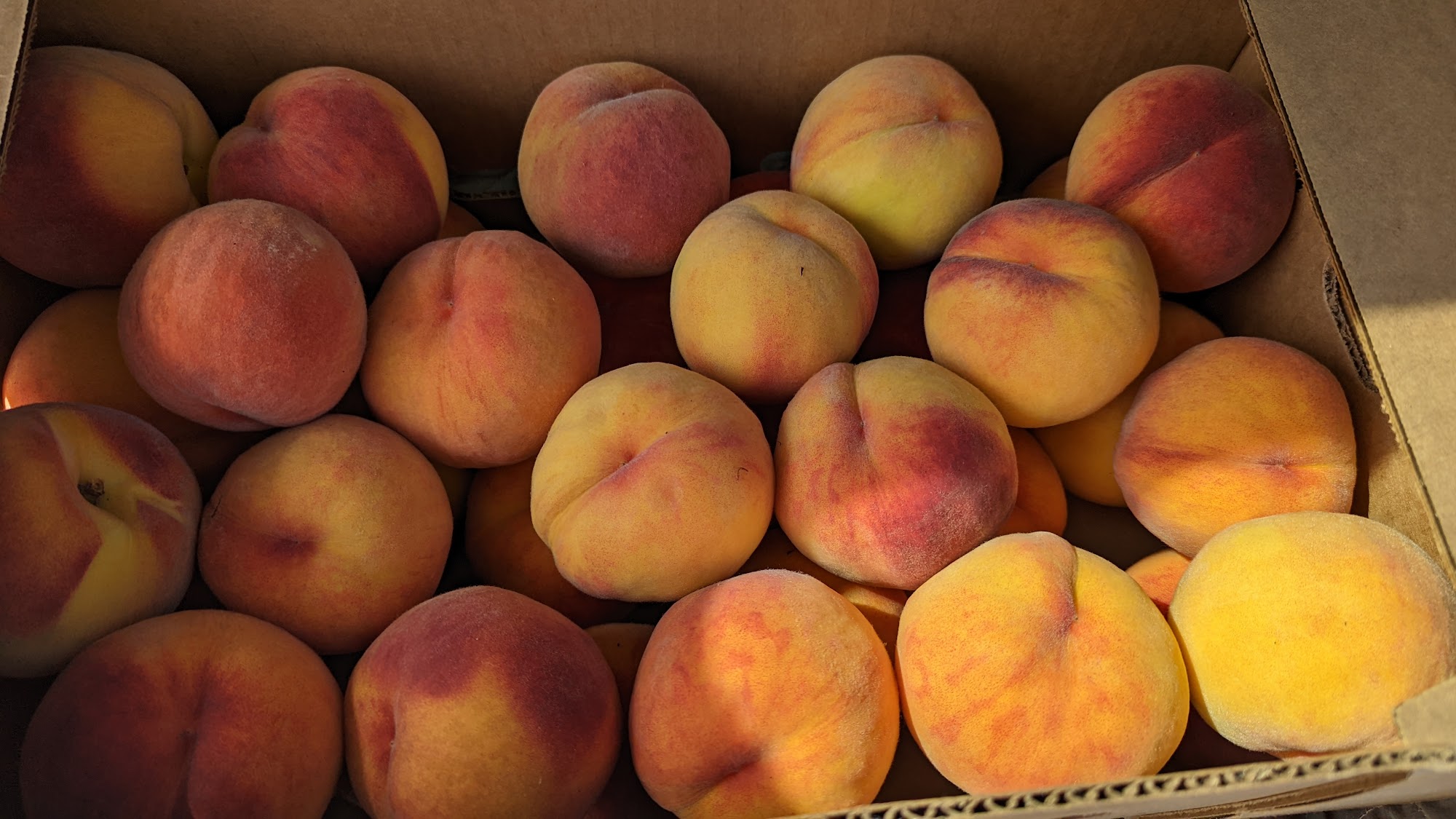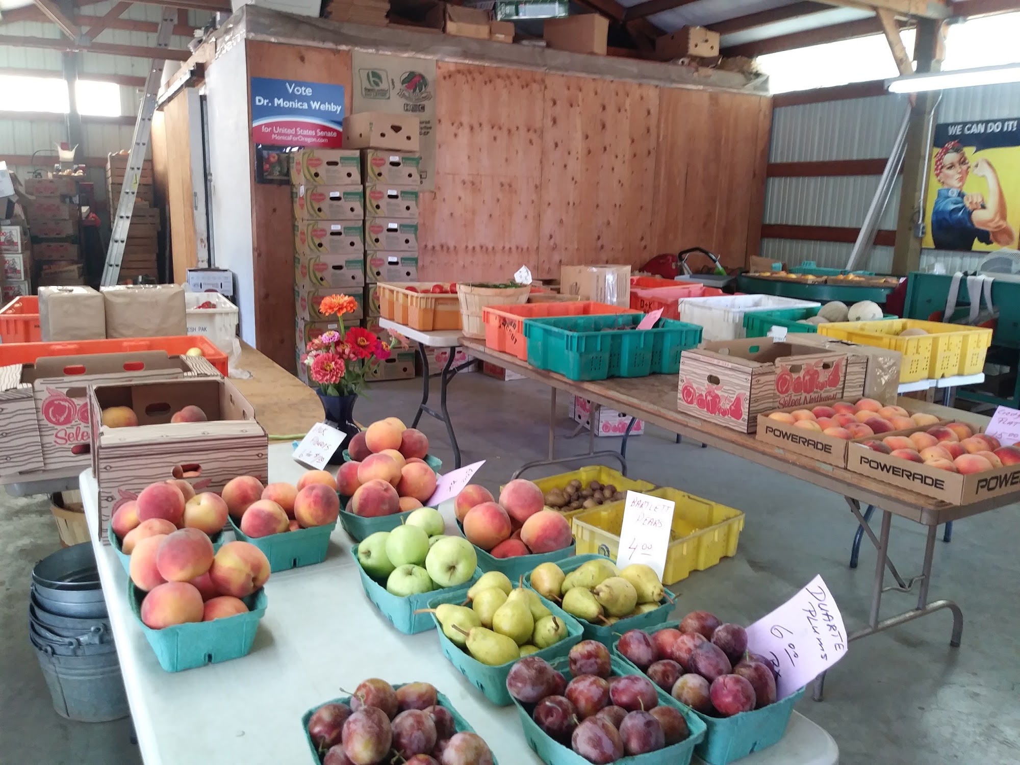As we've come to count on Elsa had beautiful fruits and veggies. We bought Henrys peaches, plums, prunes red and Austrian potatoes and chard today.